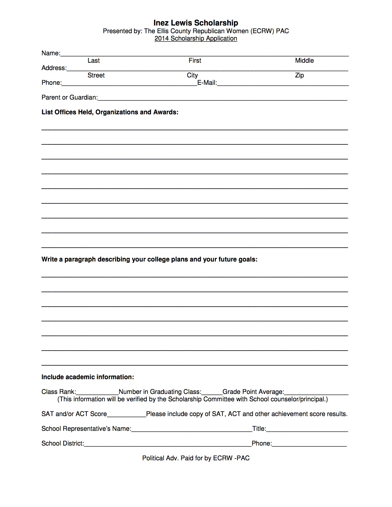 Local Scholarships and Additional Scholarship Opportunities « previous story album next » Inez Lewis Scholarship 2014 – applications Download original photo