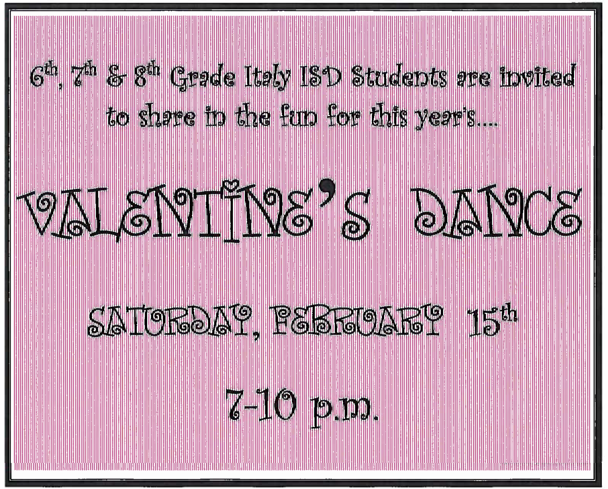 Valentine’s Dance for Italy ISD 6th, 7th and 8th graders planned « previous story album next » Download original photo