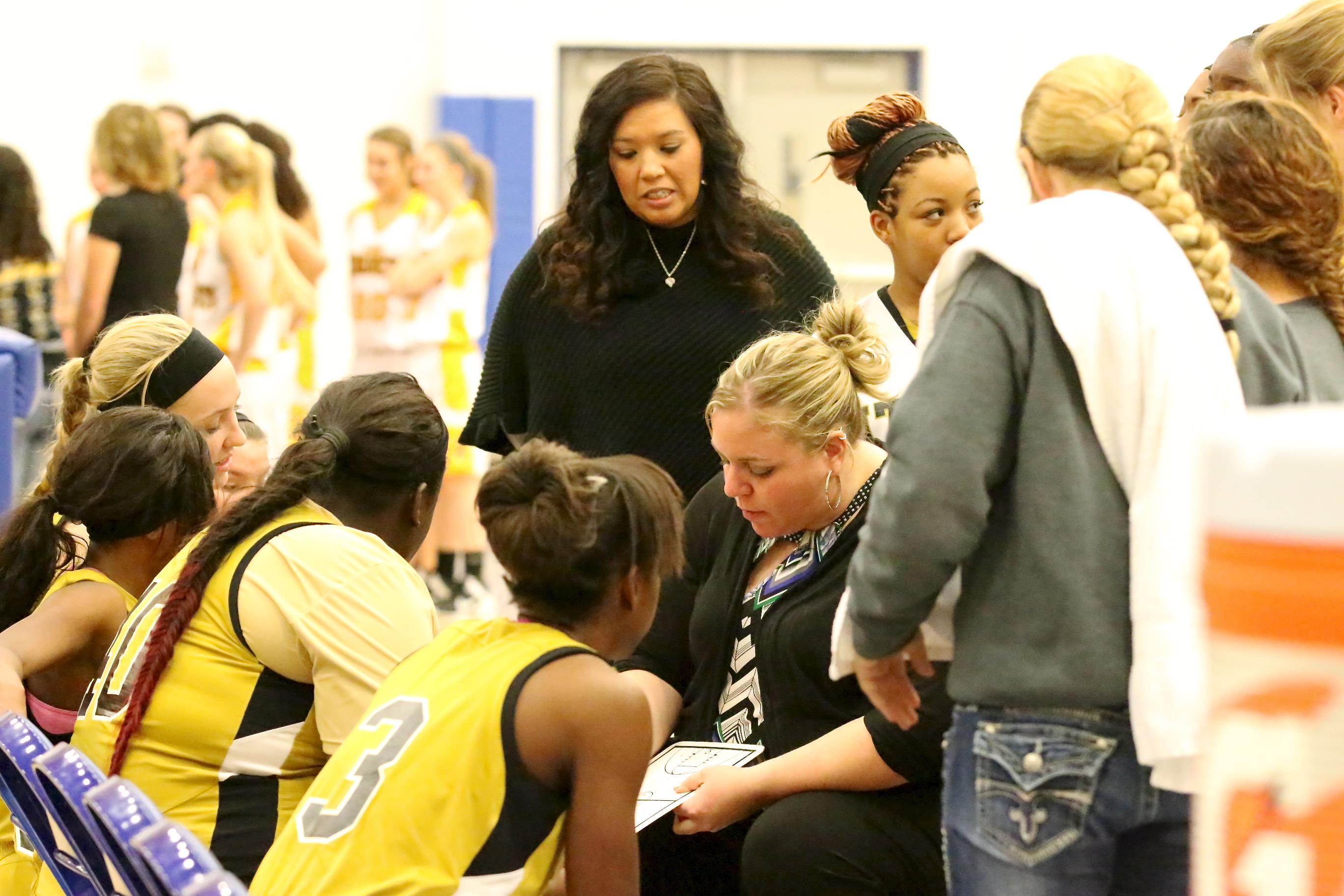 Lady Gladiators give Era a scare but Lady Hornets get the bi-district win « previous story album next » Lady Gladiator coaches Melissa Fullmer and Tina Richards talk strategy with their team during a timeout. (Barry Byers) Download original photo