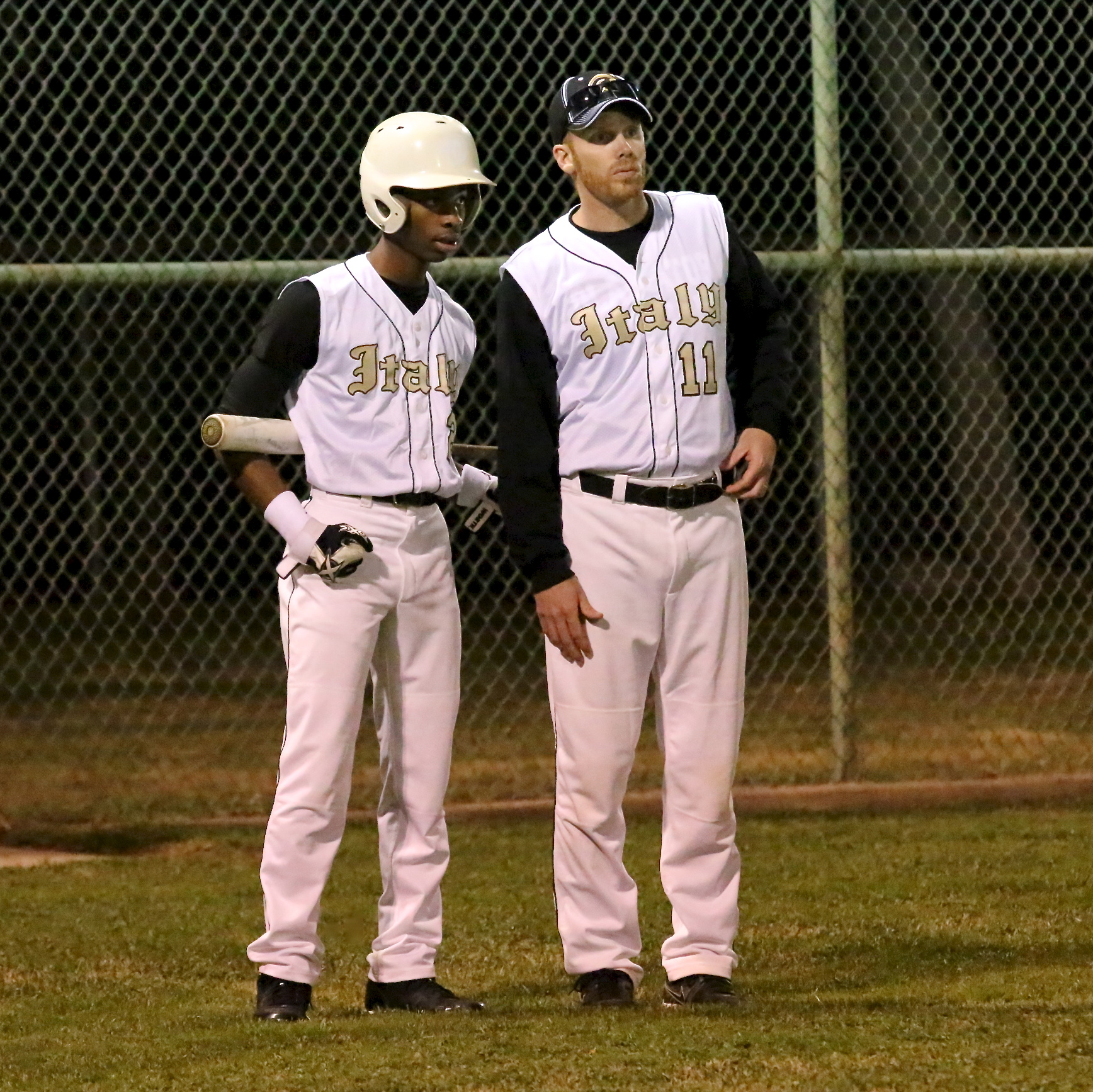 Gladiator Baseball rallys late against 2A Rio but Eagles hang on for 10-7 win « previous story album next » Eric Carson(2) and Italy Baseball head coach Jon Cady(11) discuss their options to get on base. (Barry Byers) Download original photo
