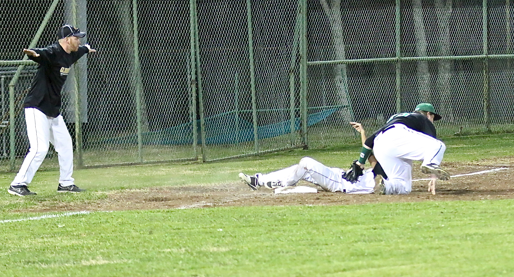 Gladiator Baseball rallys late against 2A Rio but Eagles hang on for 10-7 win « previous story album next » That’s Jorge Galvan(10) sliding safely into third base, just ask Coach Cady. (Barry Byers) Download original photo