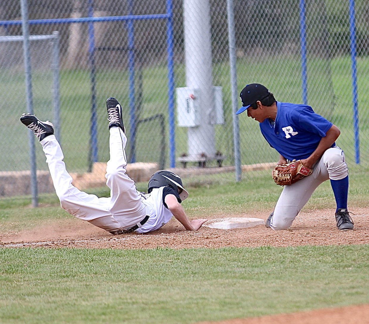 Italy Gladiators take 3rd place in Blooming Grove baseball tournament « previous story album next » Clayton Miller(6) almost does a full scorpion while diving back to the third-base bag. (Barry Byers) Download original photo