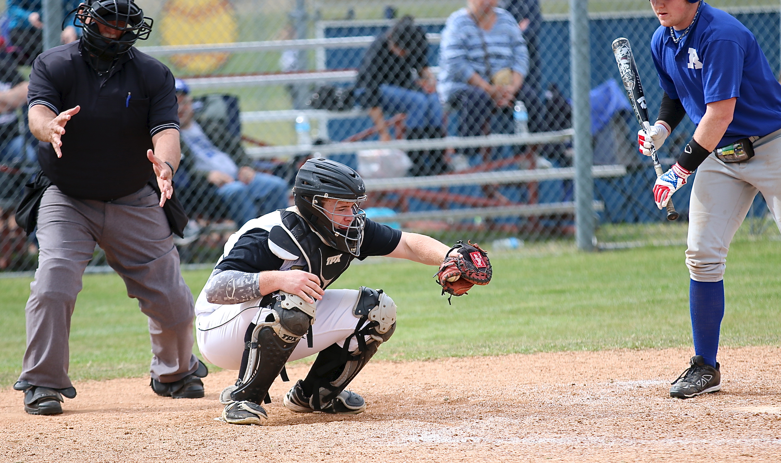 Bonus baseball coverage of Gladiators during Blooming Grove tournament « previous story album next » Catcher Tyler Vencill pulls in a strike against Rice. (Barry Byers) Download original photo