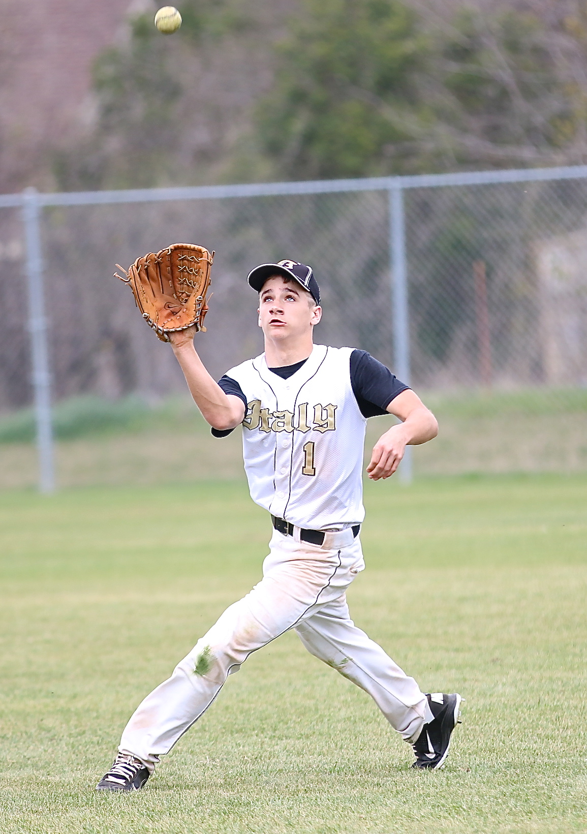 Bonus baseball coverage of Gladiators during Blooming Grove tournament « previous story album next » Levi McBride(1) catches a fly ball in right field for the Gladiators. (Barry Byers) Download original photo