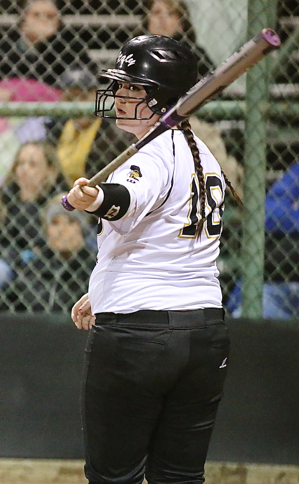 Lady Gladiators struggle in home opener against Maypearl’s Lady Panthers « previous story album next » Paige Westbrook(18) checks with head coach Wayne Rowe at third-base before stepping into the batter’s box. (Barry Byers) Download original photo