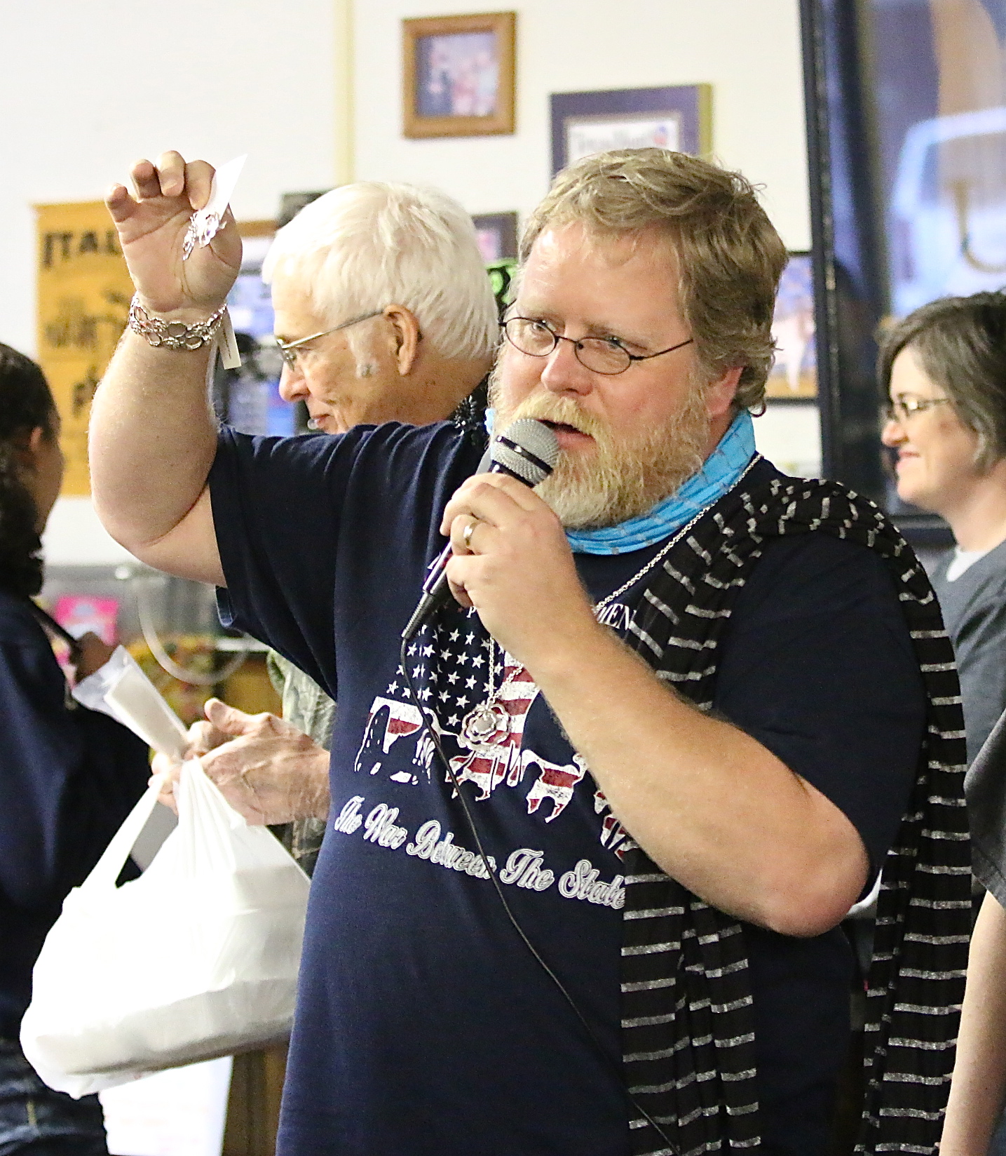 Community ensures Italy HS Band has successful Spaghetti Dinner fundraiser « previous story album next » Assistant band director David Graves models lady scarves and jewelry during the auction, but not because he has to. (Barry Byers) Download original photo