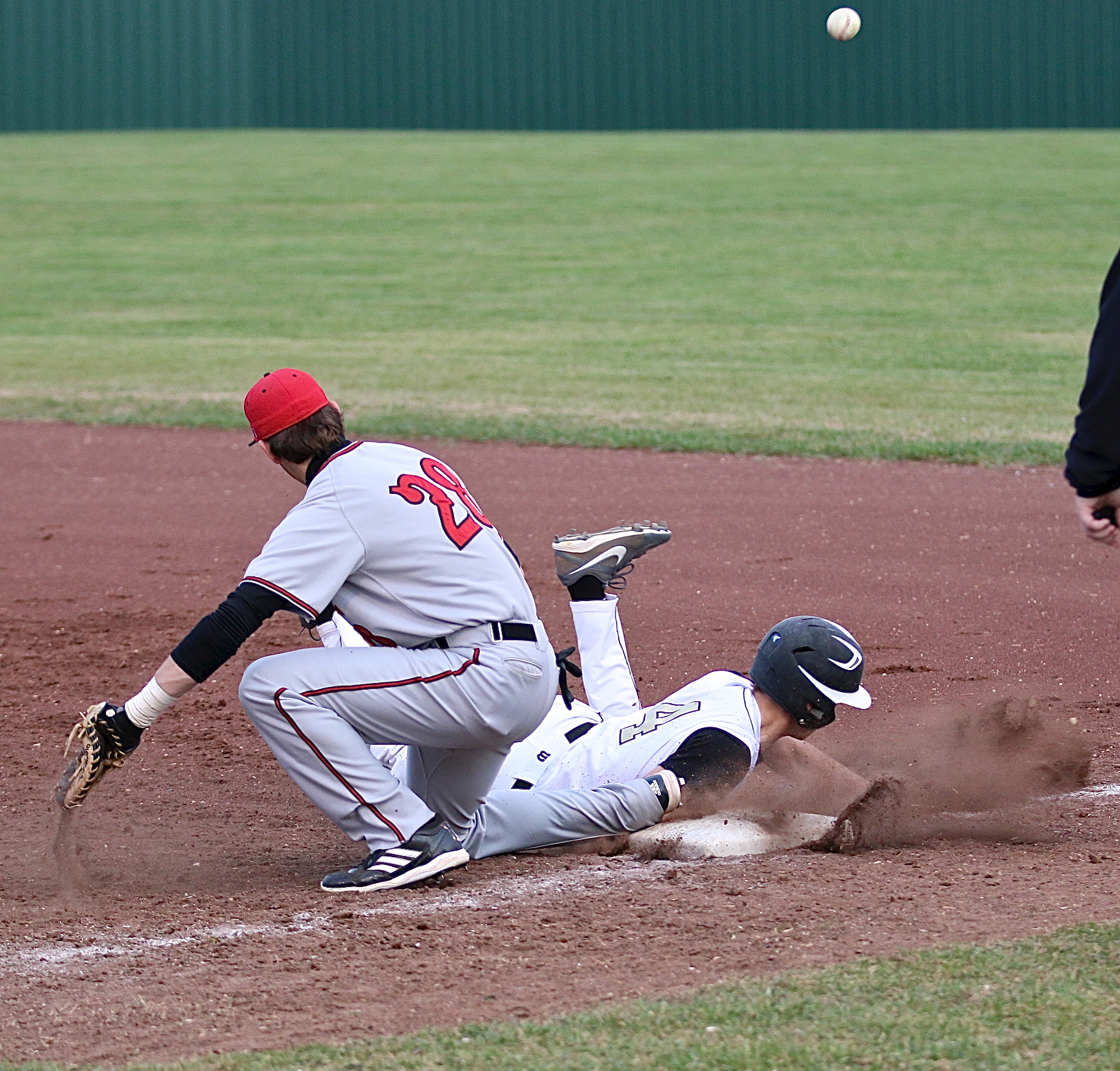 The Gladiators’ JV and varsity boys on short end of bat against Maypearl « previous story album next » Italy’s Ryan Connor(4) makes it back to first-base. (Barry Byers) Download original photo
