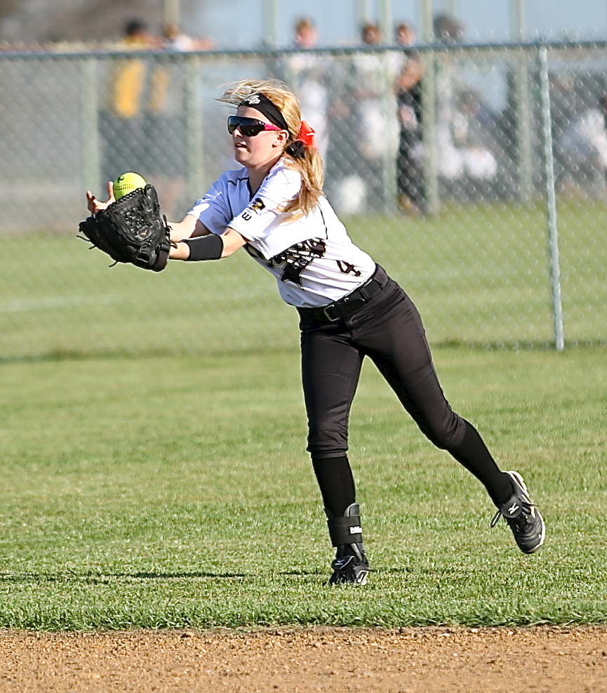 Lady Gladiators get sandblasted in Itasca, Lady Wampus Cats win 11-2 « previous story album next » Left fielder Britney Chambers(4) fights the strong winds to bobble into her mitt a fly ball for an out. (Barry Byers) Download original photo