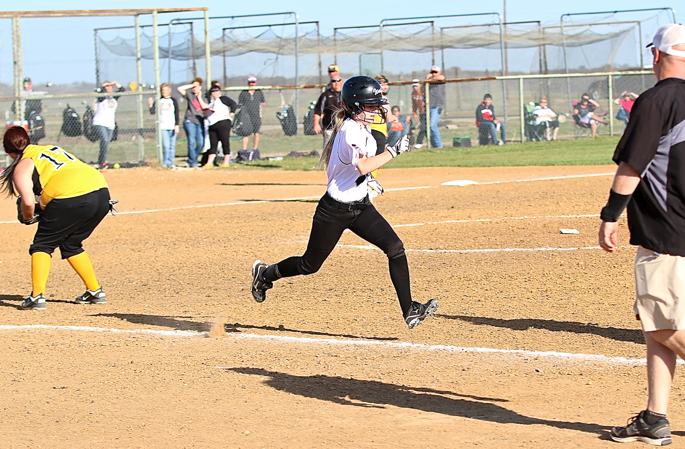 Lady Gladiators get sandblasted in Itasca, Lady Wampus Cats win 11-2 « previous story album next » A sprinting Britney Chambers(4) reaches first-base safely. (Barry Byers) Download original photo