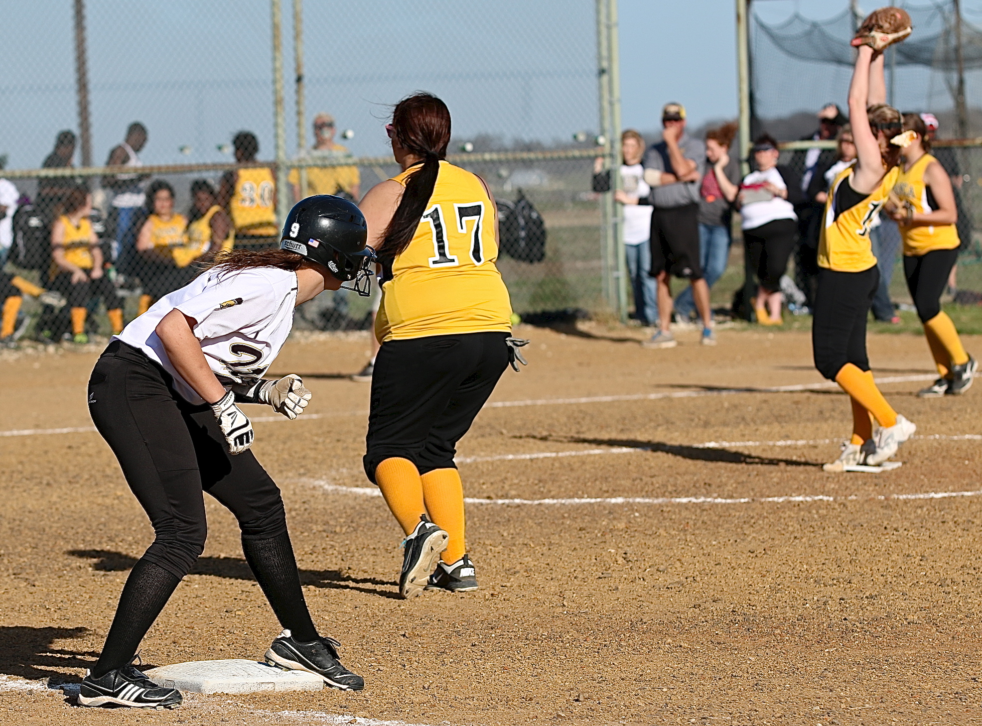 Continued softball action from the Lady Gladiators and their duel with Itasca « previous story album next » Lillie Perry(9) is ready to run. (Barry Byers) Download original photo