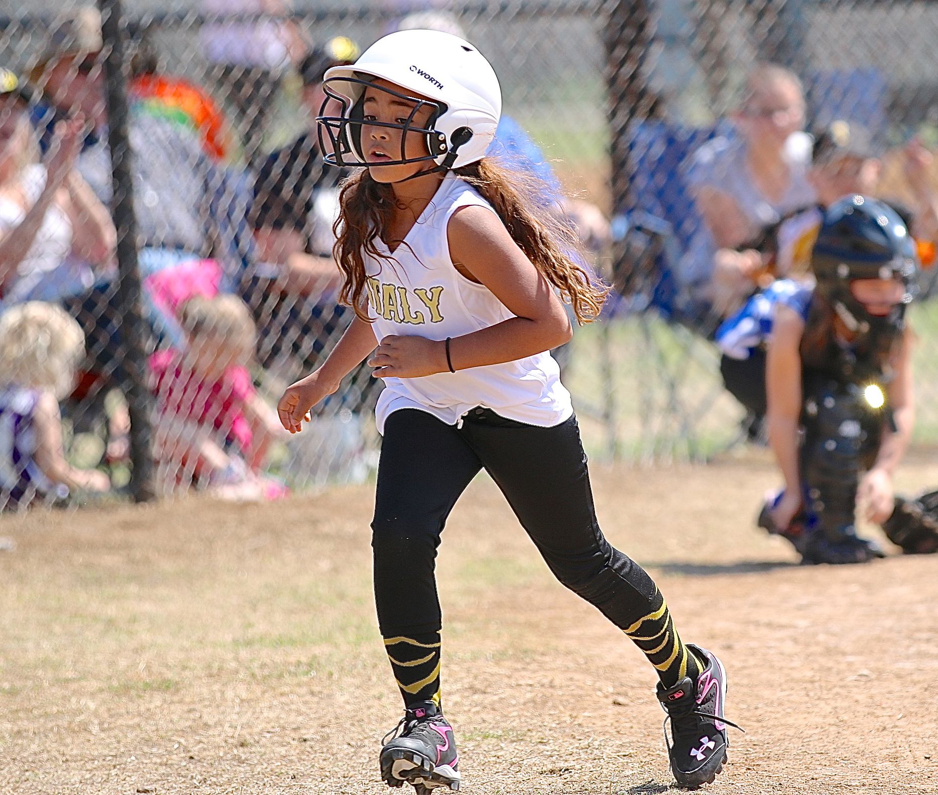 IYAA Softball/Baseball celebrates Opening Day 2014 with enthusiasm and success « previous story album next » Justice Shelby scores for Italy during the Coach Pitch Girls game. (Barry Byers) Download original photo