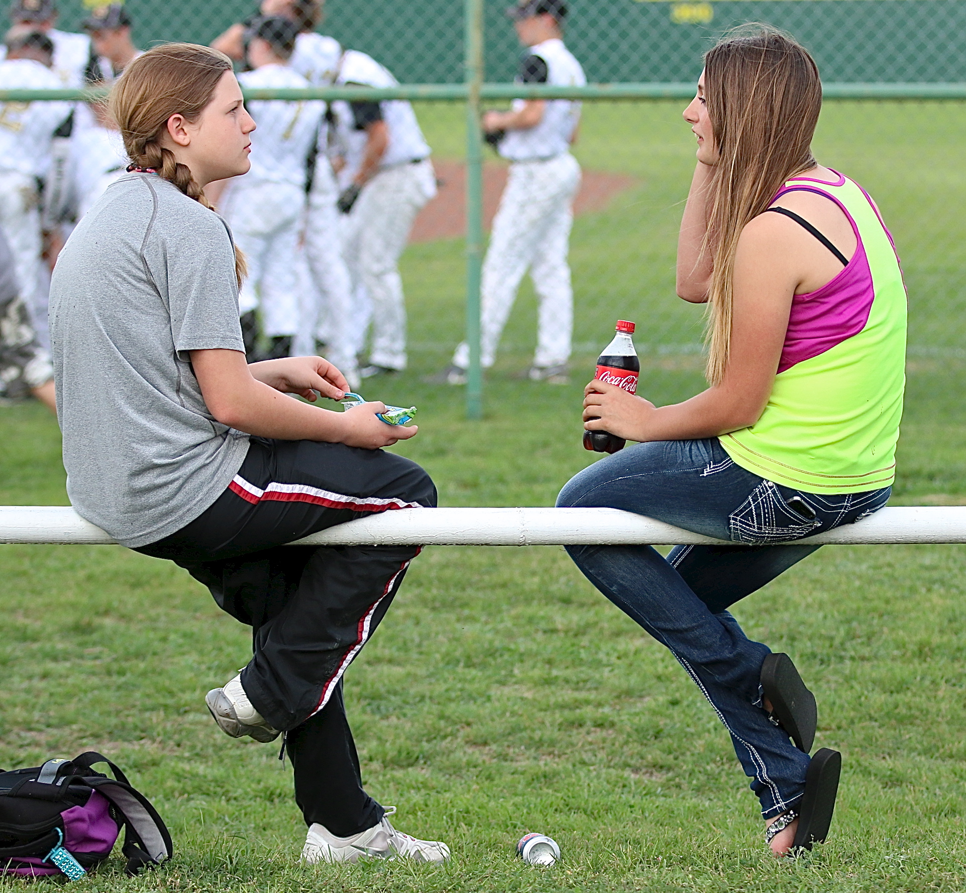 Gladiators post second district shutout, 9-0 over Itasca during White Out day « previous story album next » Tatum Adams and Cassidy Gage visit before the start of the game between Italy and Itasca. (Barry Byers) Download original photo