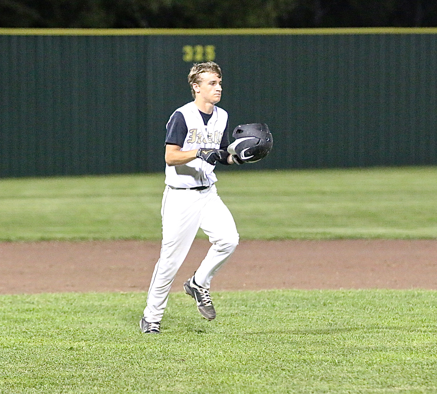 Levi McBride(1) and the Gladiators trot off victorious with McBride recording a game winning RBI to help Italy run rule visiting Grand Prairie Advantage Academy for the second time in district play. Italy won 12-2 in the top of the fifth-inning. (Barry Byers)