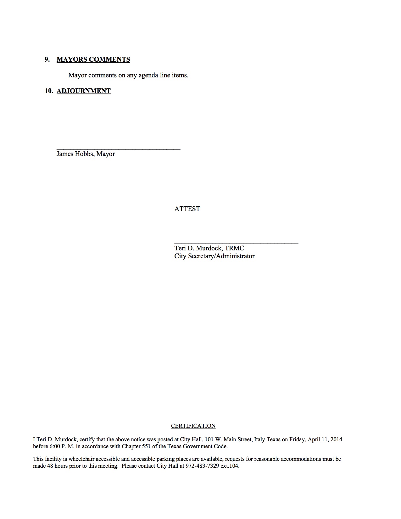 Agenda: Italy City Council Meeting-Monday, April 14, 2014 « previous story album next » Agenda – page 3 Download original photo
