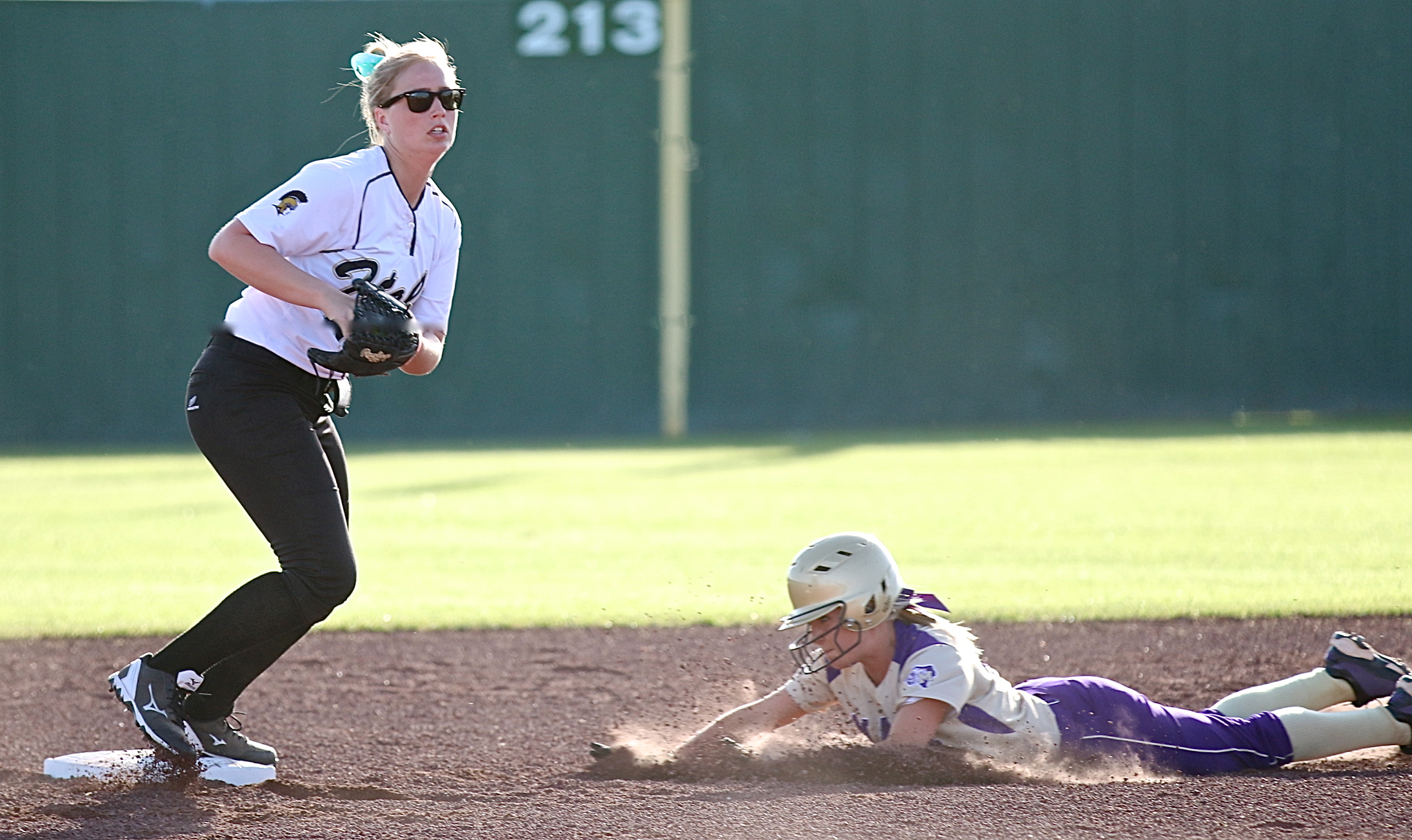 Lady Gladiators drop a heartbreaker to Mart in 9-8 bi-district loss « previous story album next » Shortstop Madison Washington(2) makes the grab for the force out at second-base. (Barry Byers) Download original photo