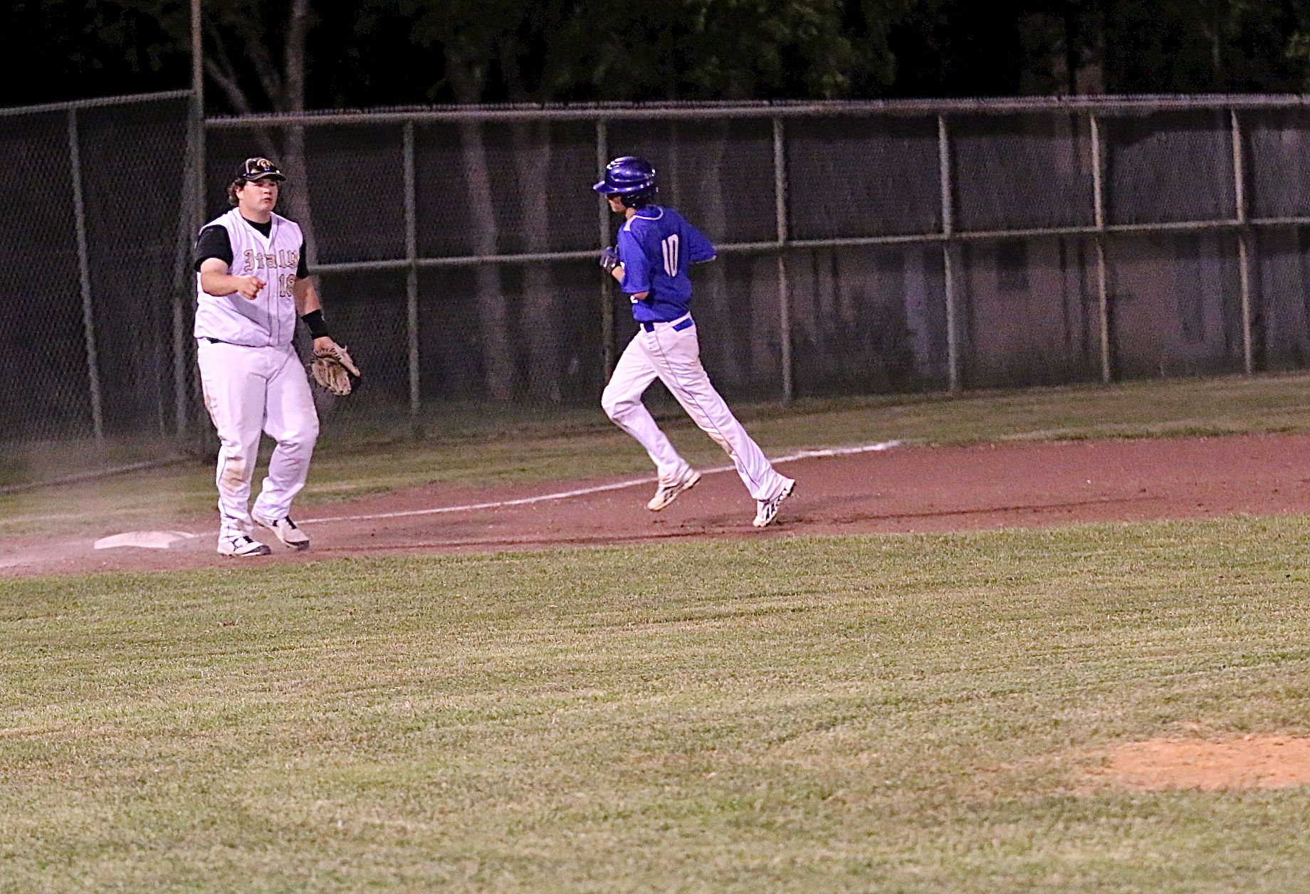Gladiator third-baseman John Byers(18) ends any hopes for a Frost rally when he fields a grounder, steps on the bag for the force out and then throws across the infield for the final out at first-base. A double-play! (Barry Byers)