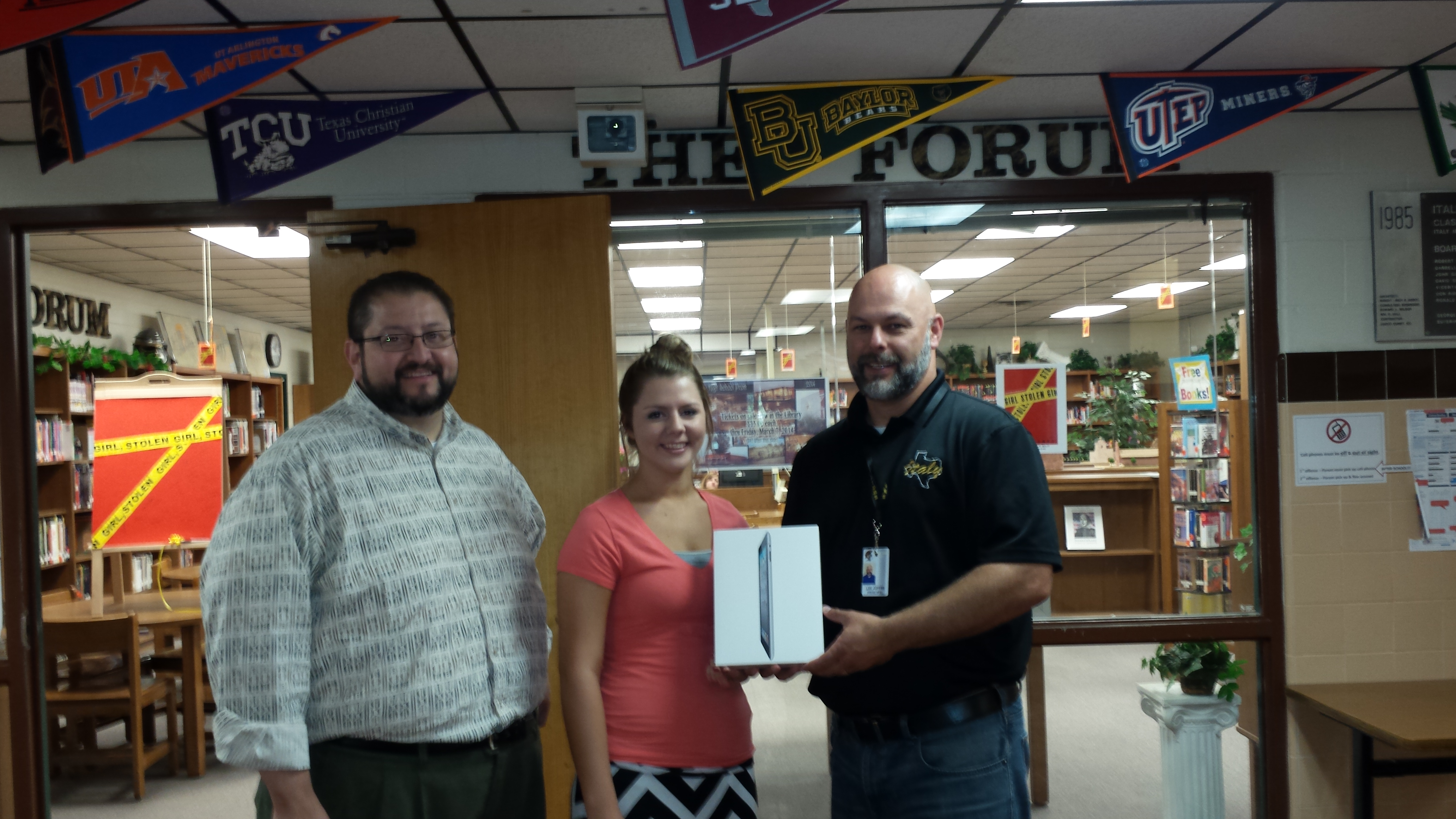 Italy High School/Junior High School iPad winner « previous story album next » (L-R) Italy ISD superintendent, Jaime Velasco; Brooke Deborde (Fr); Lee Joffre, Italy High School principal Download original photo