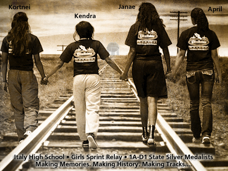 Bringing medals home to Italy — Congratulations to Kortnei Johnson, Kendra Copeland, Janae Robertson and April Lusk for finishing strong to become 2014 1A-D1 State Silver Medalists in the girls sprint relay event! (Barry Byers)