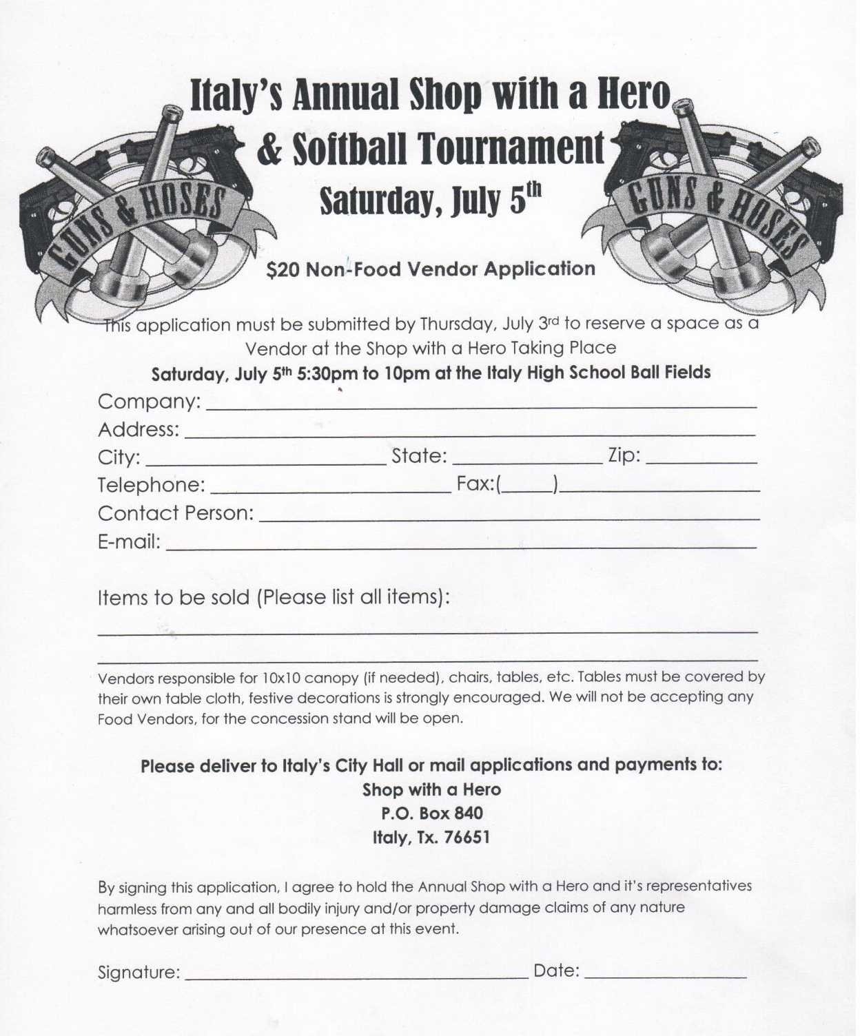 Guns & Hoses Softball Tournament Vendor Application « previous story album next » Download original photo
