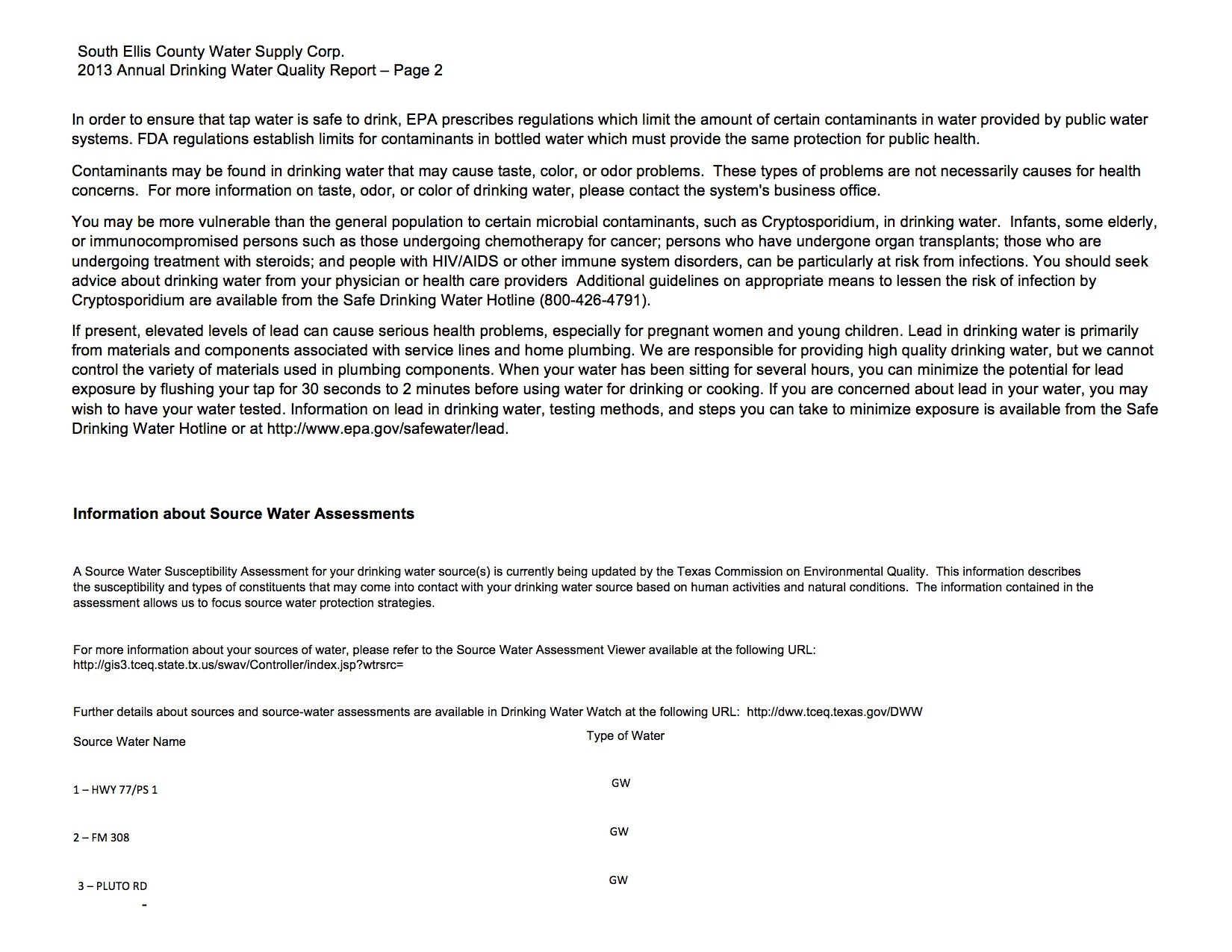 South Ellis County Water Supply Corp. releases annual drinking water report « previous story album next » Annual Drinking Water Quality Report – page 4 Download original photo