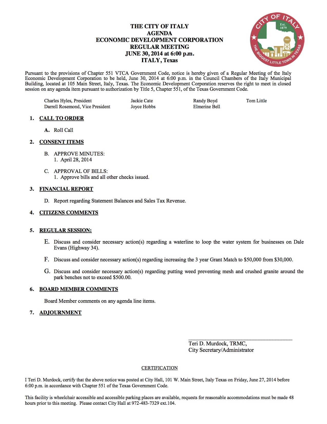 Agenda: Italy EDC Meeting – Monday, June 30, 2014 « previous story album next » Download original photo