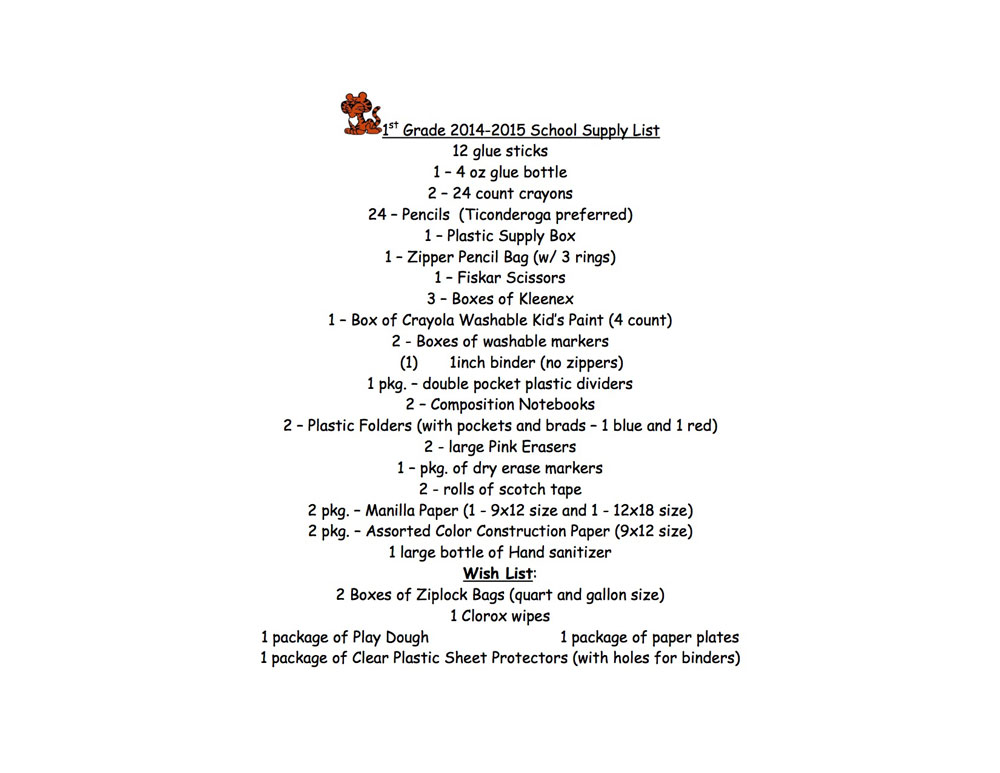 Stafford Elementary 2014-2015 School Supply Lists « previous story album next » 2014-2015 Stafford Elementary School Supply List – 1st Grade Download original photo