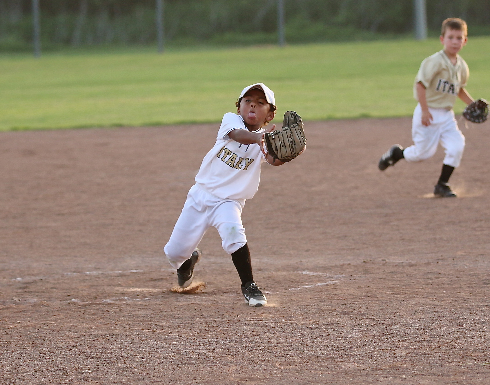 IYAA T-Ball Gladiators continue to grow during postseason play in Hillsboro « previous story album next » Pitcher Cason Green(10) attempts to pull in a popup with one eye closed and a mouth full of dust. (Barry Byers) Download original photo