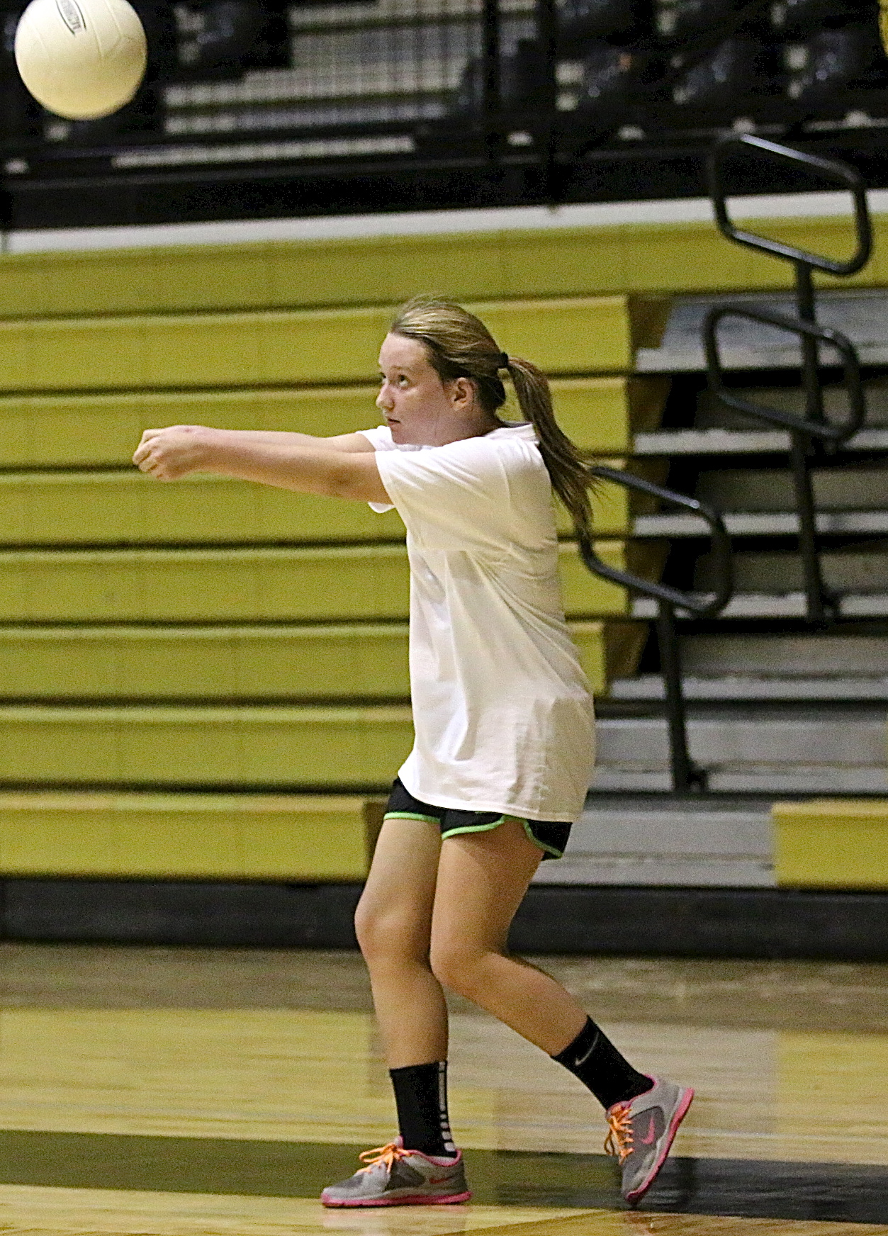 IHS Volleyball begins a new journey under new head coach, Jane Laws « previous story album next » Rachael Huskins returns the ball as Italy’s volleyball ladies give it their all during drills. (Barry Byers) Download original photo