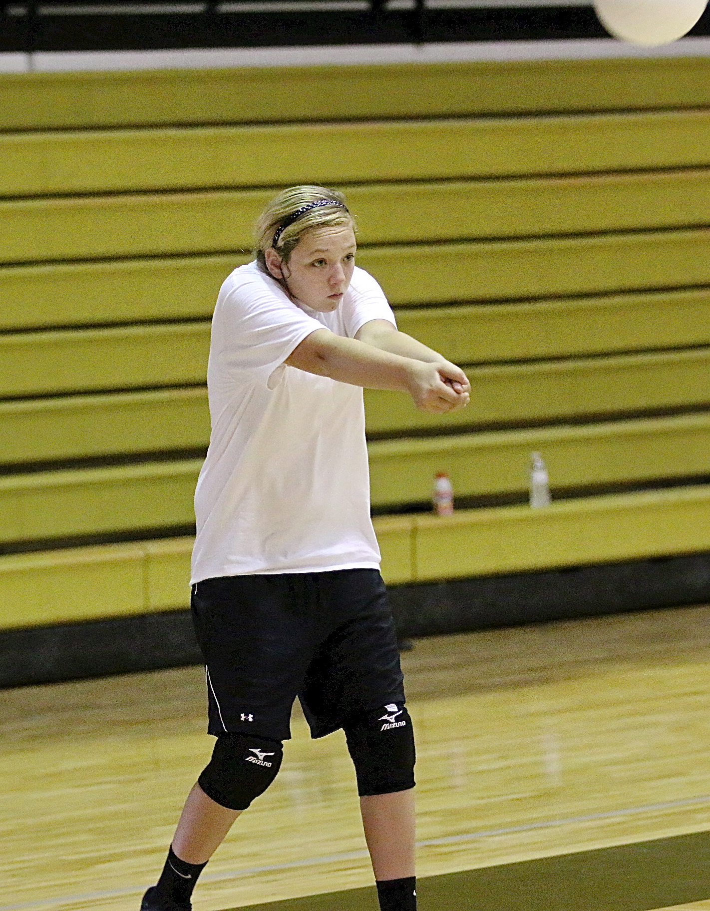 IHS Volleyball begins a new journey under new head coach, Jane Laws « previous story album next » Brycelen Richards bumps the ball up during a drill. (Barry Byers) Download original photo
