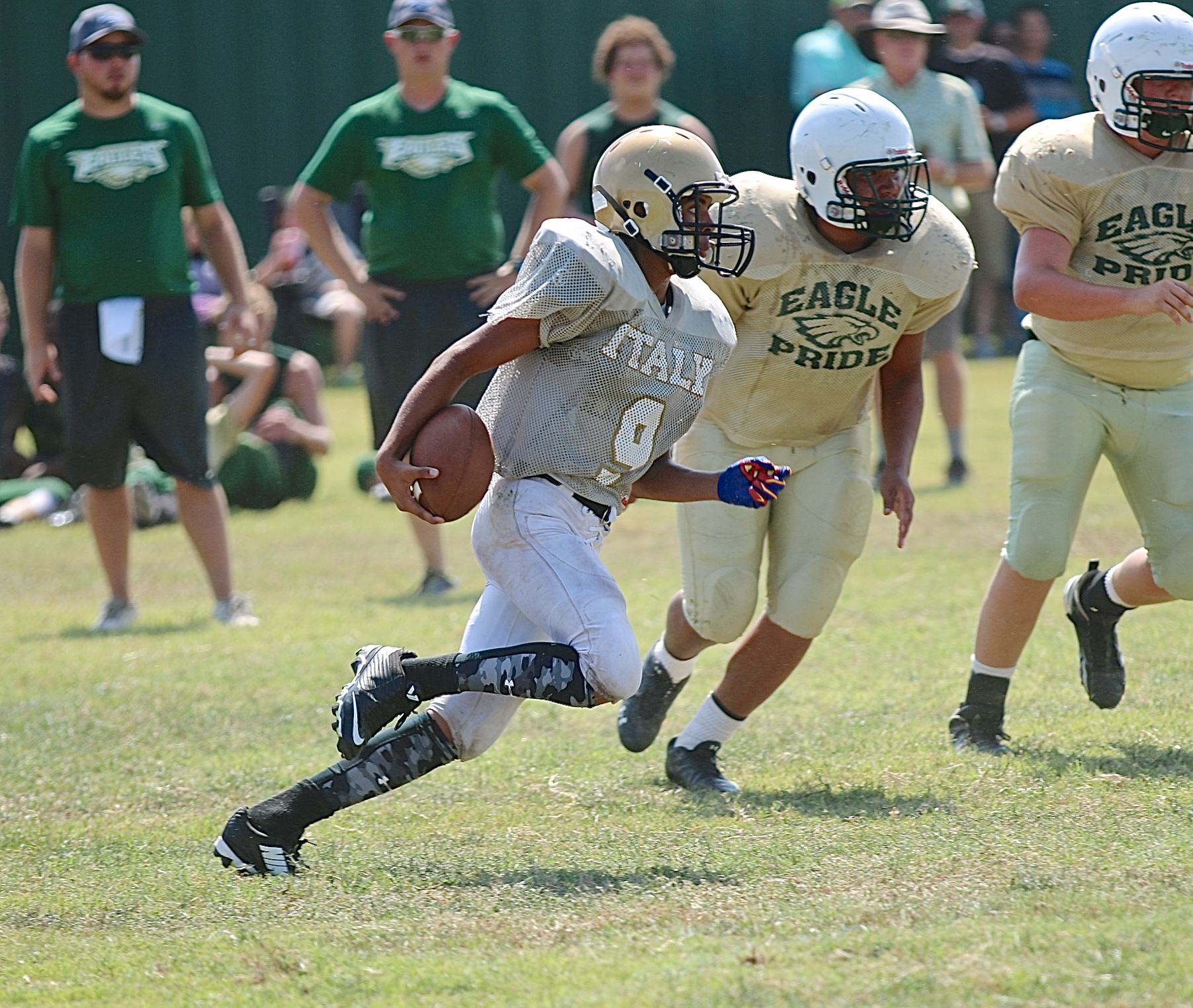 Italy clashes with Valley Mills in a physical grid-iron scrimmage « previous story album next » JV Gladiator quarterback Tylan Wallace(9) takes matters into his own hands as he breaks a big run for Italy. (Barry Byers) Download original photo