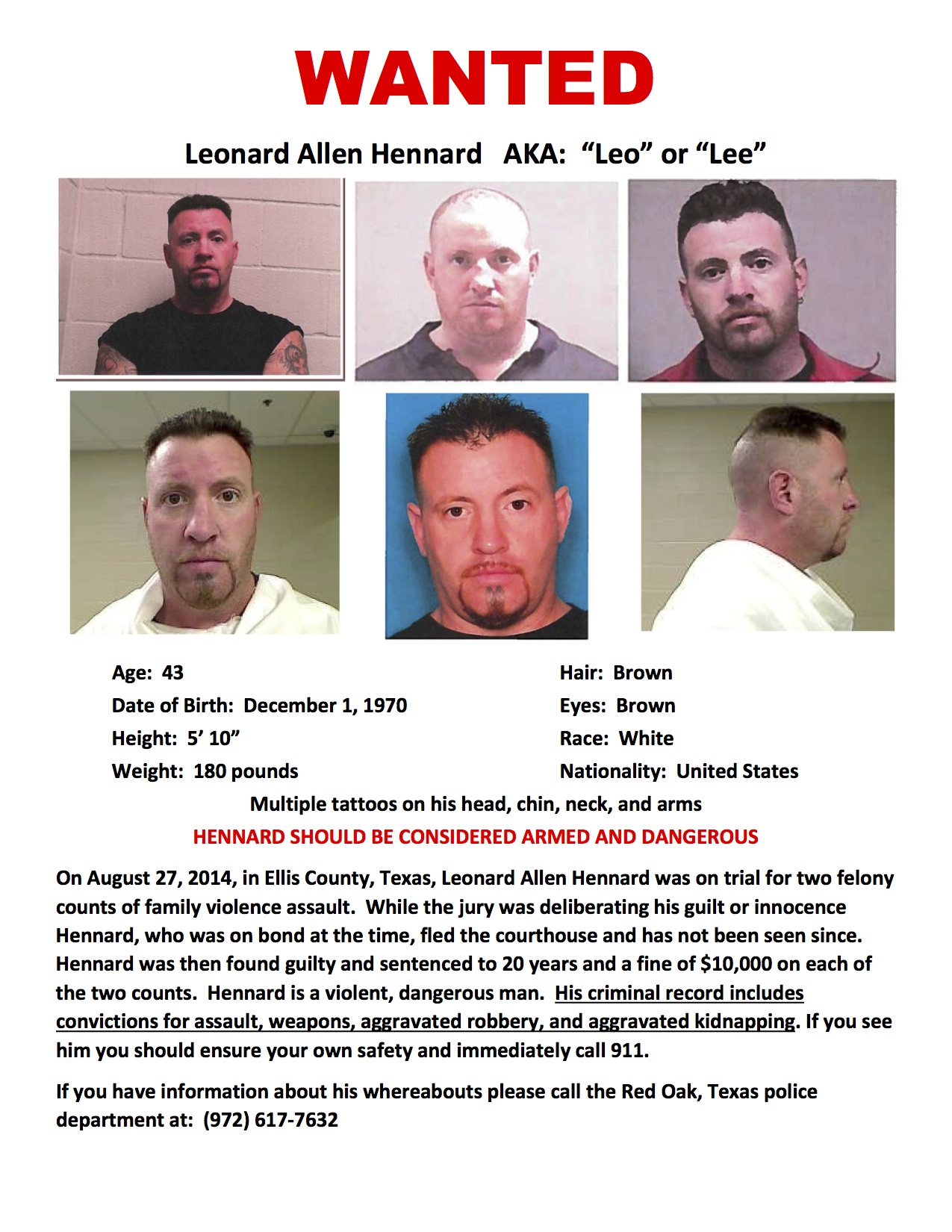 WANTED: Leonard Allen Hennard aka “Leo” or “Lee” « previous story album next » Download original photo