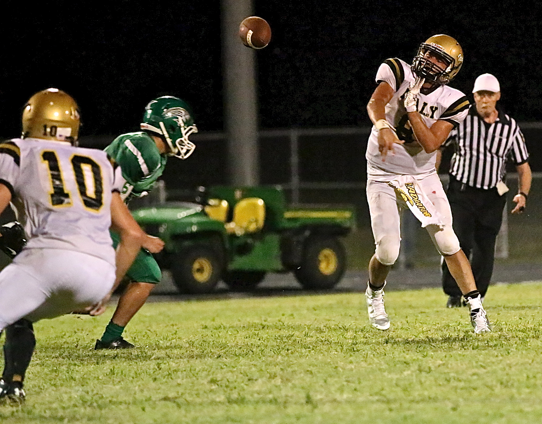 Gladiators drop season opener to Kerens « previous story album next » Italy’s Joe Celis(10) connects on a pass with teammate Coby Jeffords(10). (Barry Byers) Download original photo