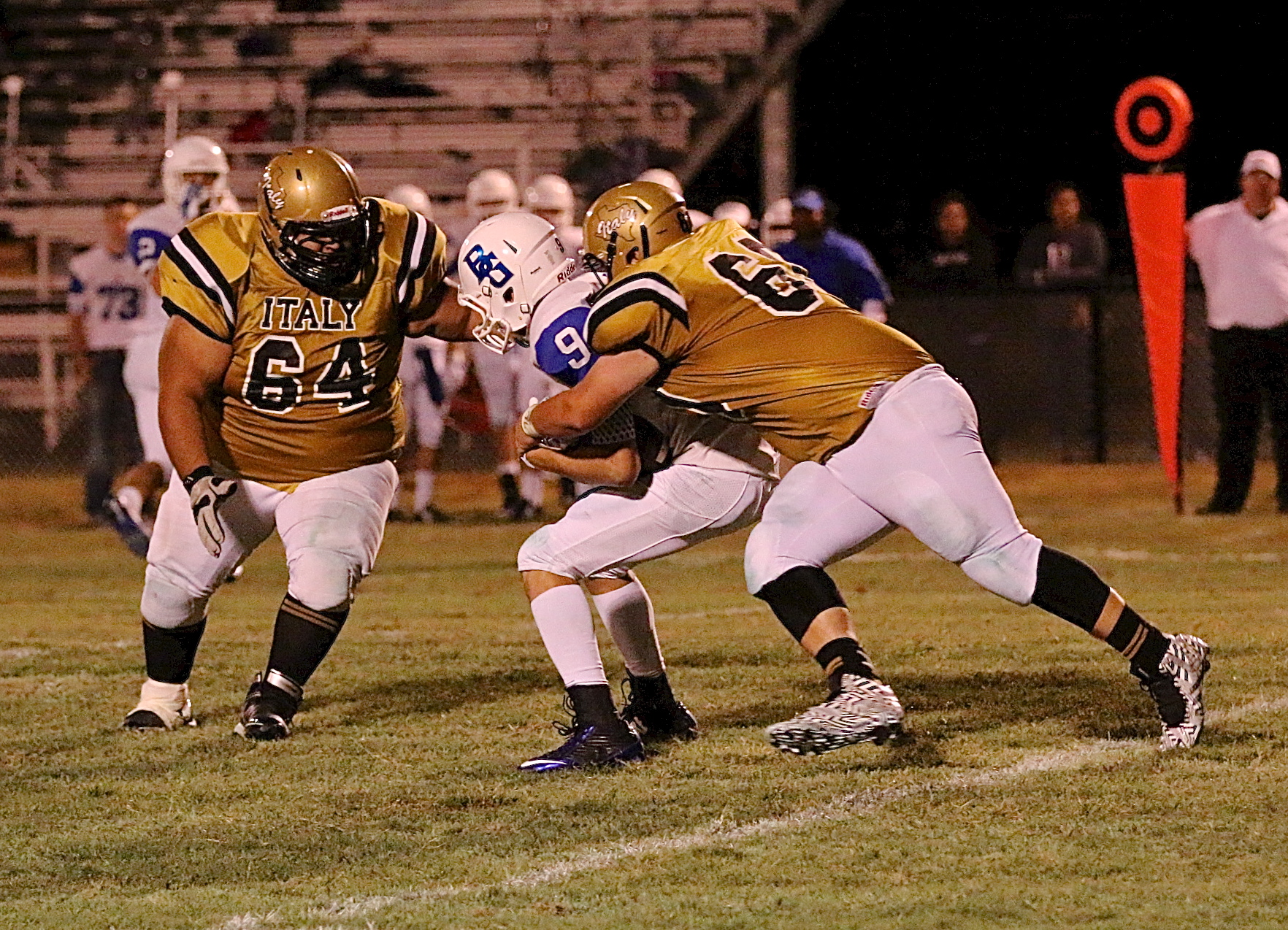 Gladiators show improvement but injuries hard to overcome versus Blooming Grove « previous story album next » BG’s #9 has no chance as John Byers(60) and teammate Ty Fernandez(64) shutdown a screen pass play attempted by the Lions. (Barry Byers) Download original photo