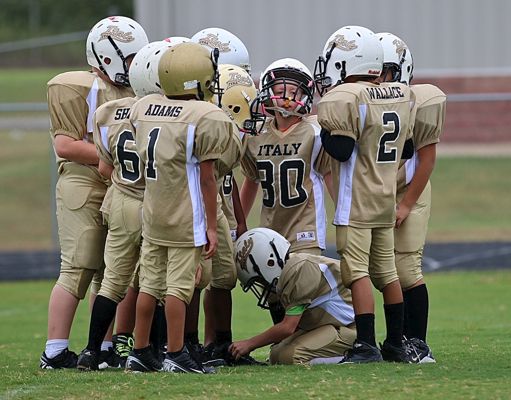 IYAA opens 2014 football season with three away games against Rice « previous story album next » B-team Gladiators huddle up to get the offensive play call from quarterback Jaylon Wallace(2). (Barry Byers) Download original photo