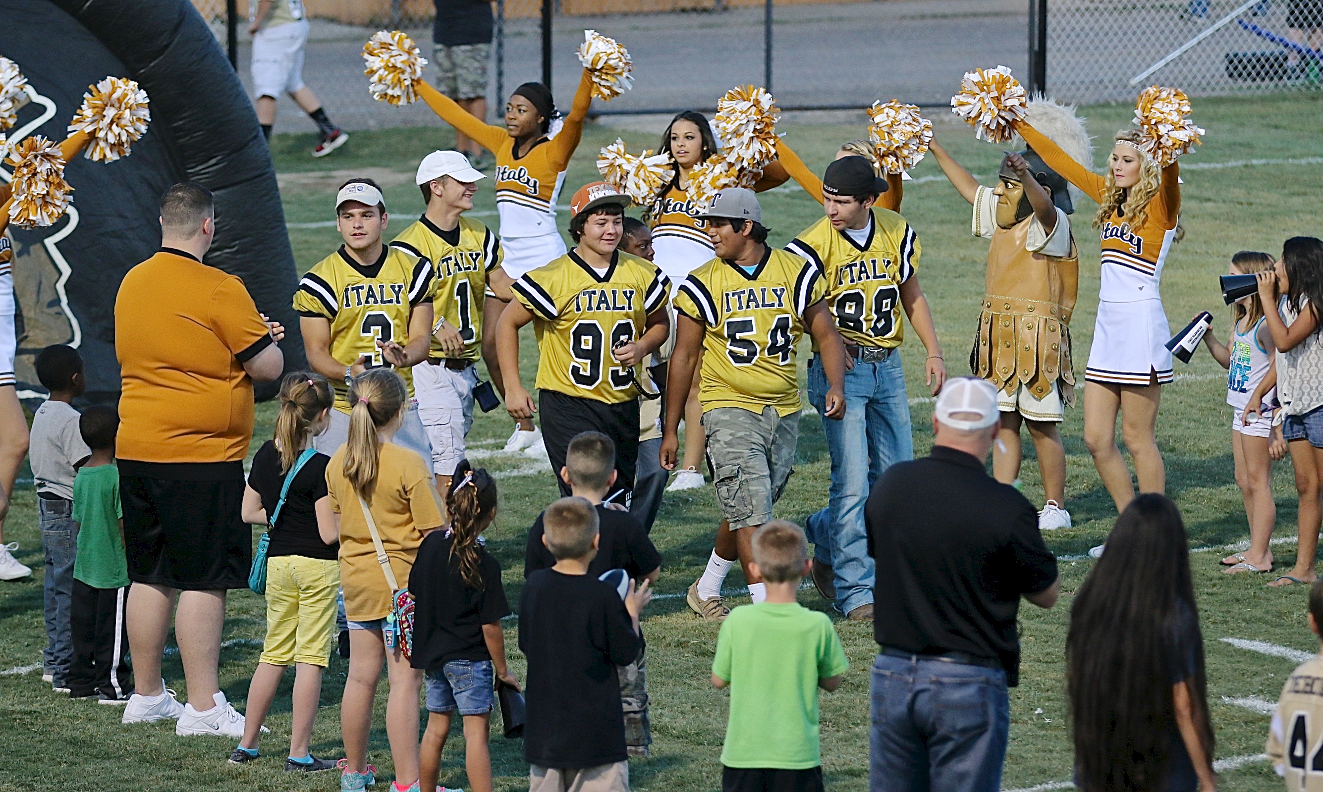 Injured but not forgotten are Gladiators Hunter Merimon(3), Levi McBride(1), Barry Grant(99), Chris Davila(54) and Micah Escamilla(88). Colin Newman was already on the sideline and Jack Hernandez returned to action after being out last week. (Barry Byers)