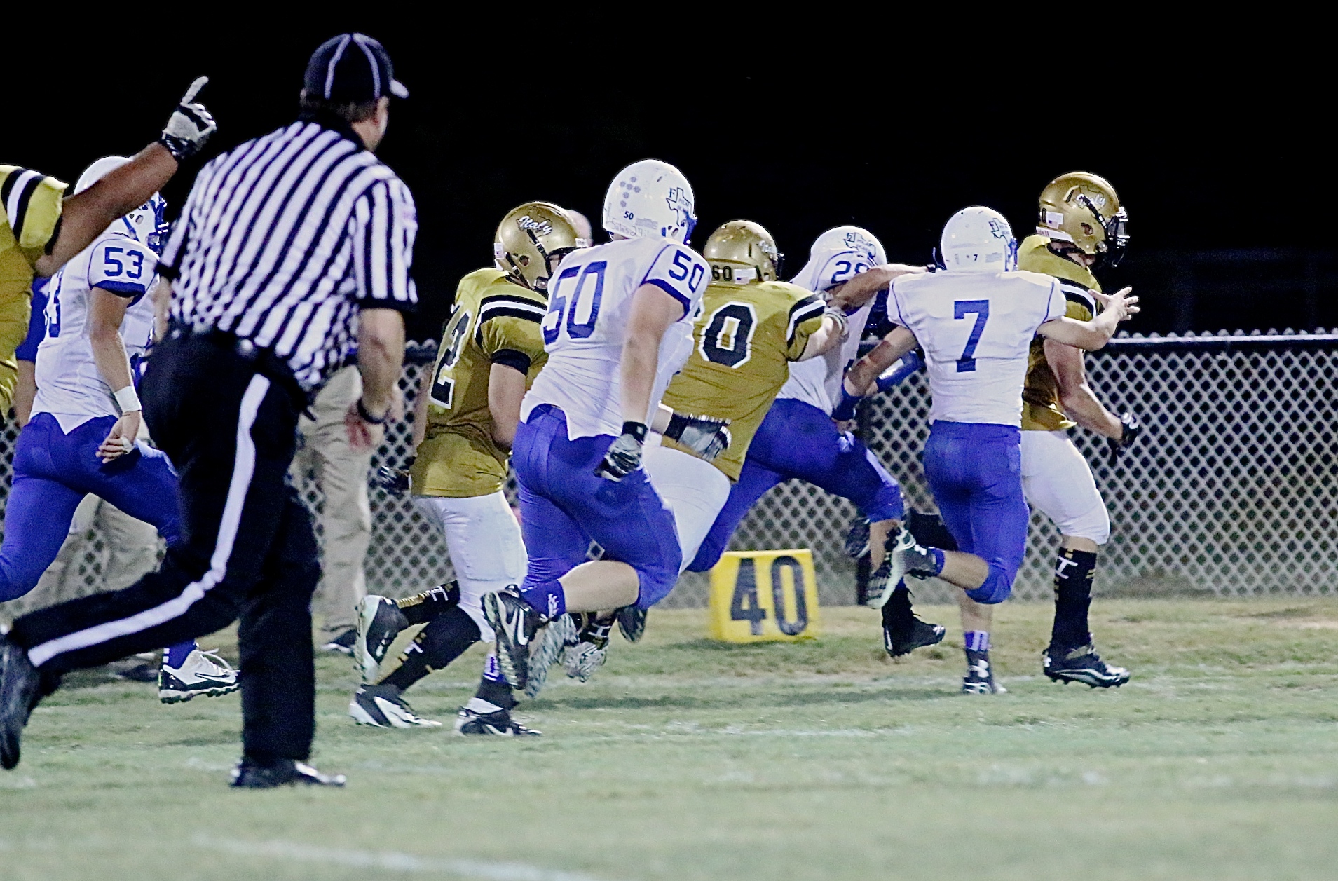 Italy defeats Frost 35-19 at Willis Field « previous story album next » One last block by backside offensive tackle John Byers(60) helps teammate Coby Jeffords(10) finish off a 63-yard touchdown run against Frost. (Barry Byers) Download original photo