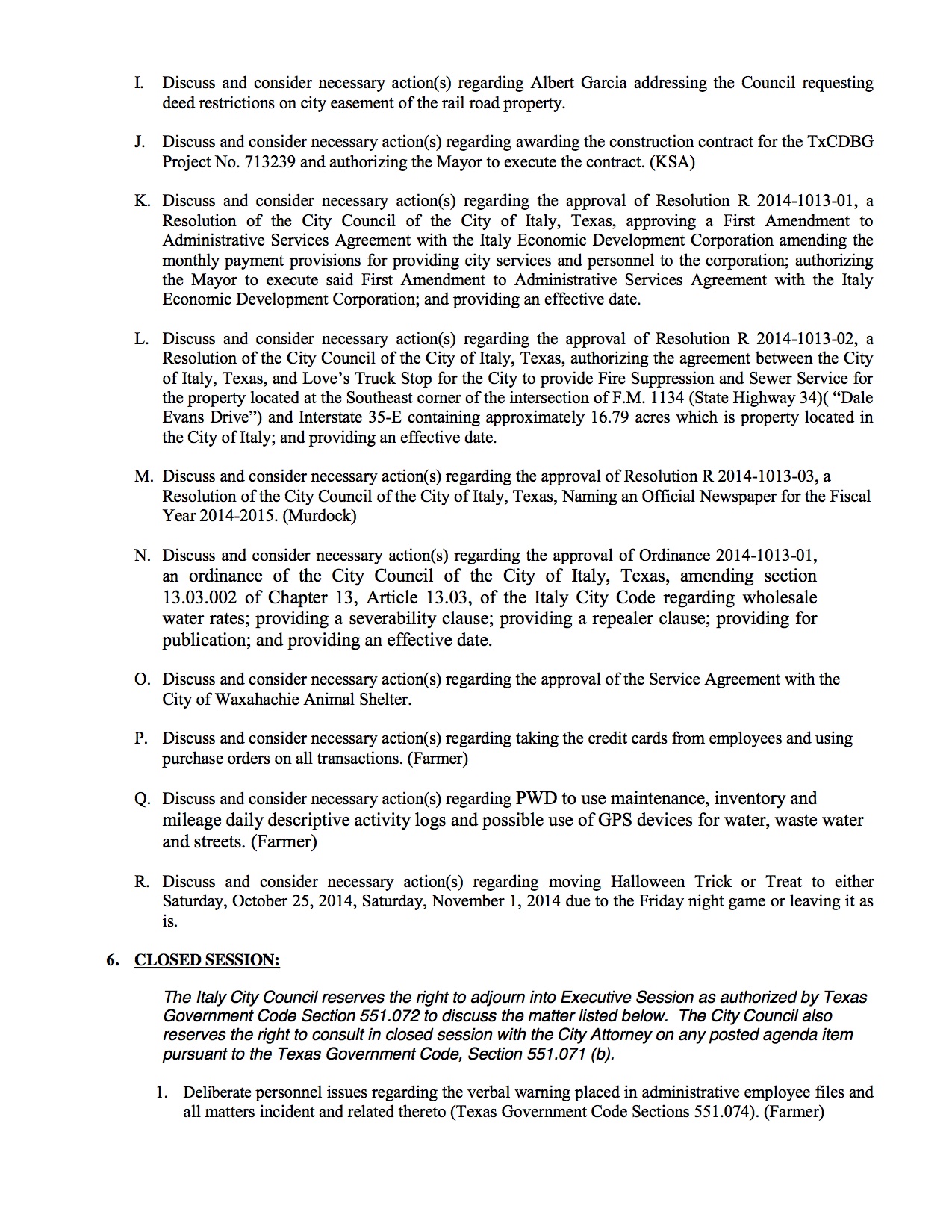Agenda: Italy City Council Meeting—Monday, October 13, 2014 « previous story album next » Agenda – page 2 Download original photo