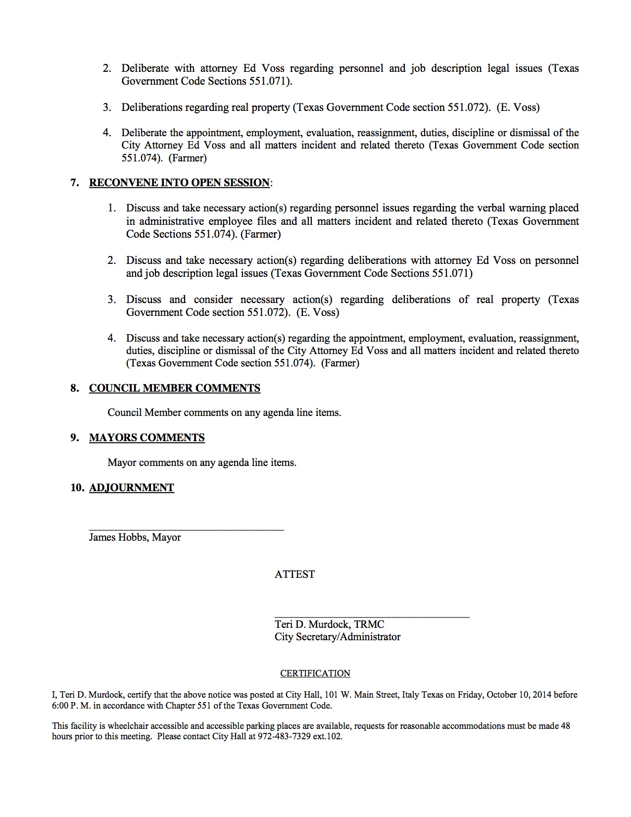 Agenda: Italy City Council Meeting—Monday, October 13, 2014 « previous story album next » Agenda – page 3 Download original photo