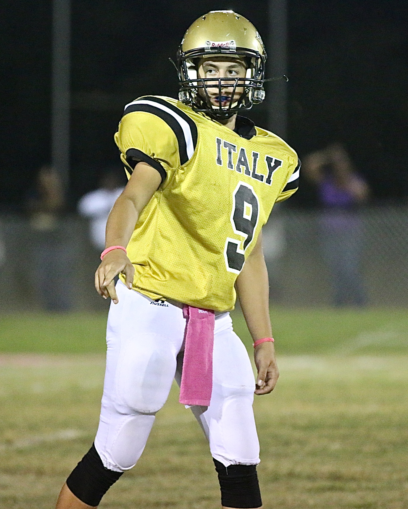 Homecoming 2014 Continued….Gladiators Forever!!! « previous story album next » Gary Escamilla(9) lines up at wide receiver for the Gladiators. (Barry Byers) Download original photo