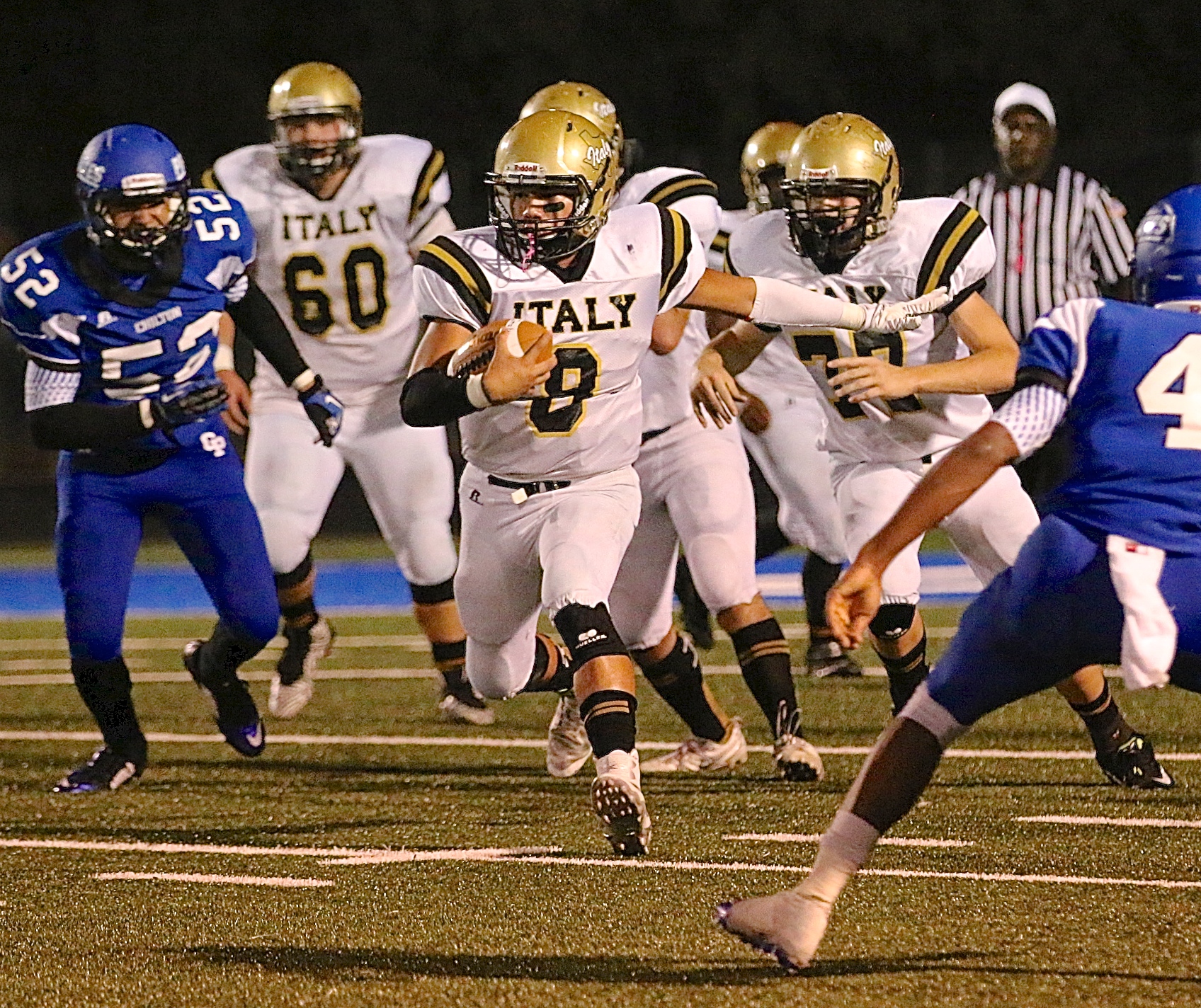 Gladiators fight to the end but the speedy Chilton Pirates get the win « previous story album next » Quarterback Joe Celis(8) finds running room against the speedy Chilton defense. (Barry Byers) Download original photo
