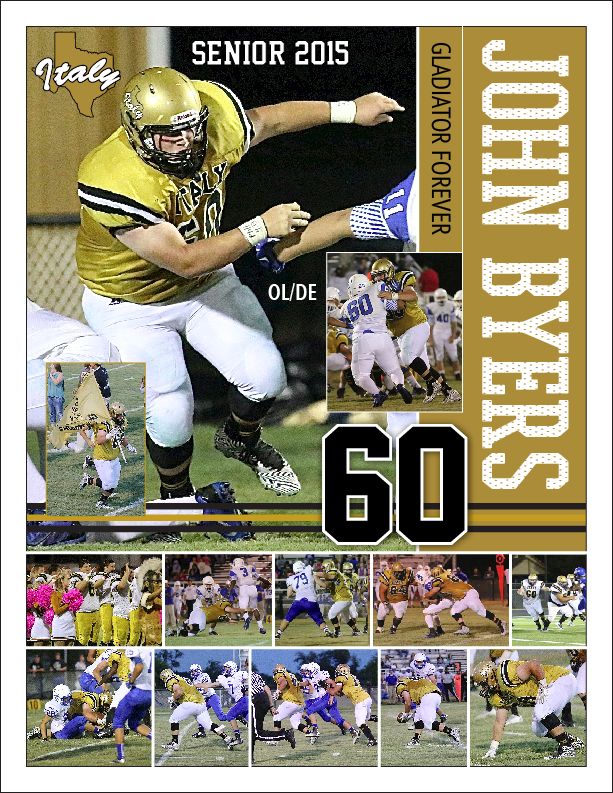 John Byers(60), senior Gladiator 2015. John was named 2nd Team All-District Offensive Lineman and Honorable Mention All-District Defensive End in 2A-2 Region III District 10. (Barry Byers)