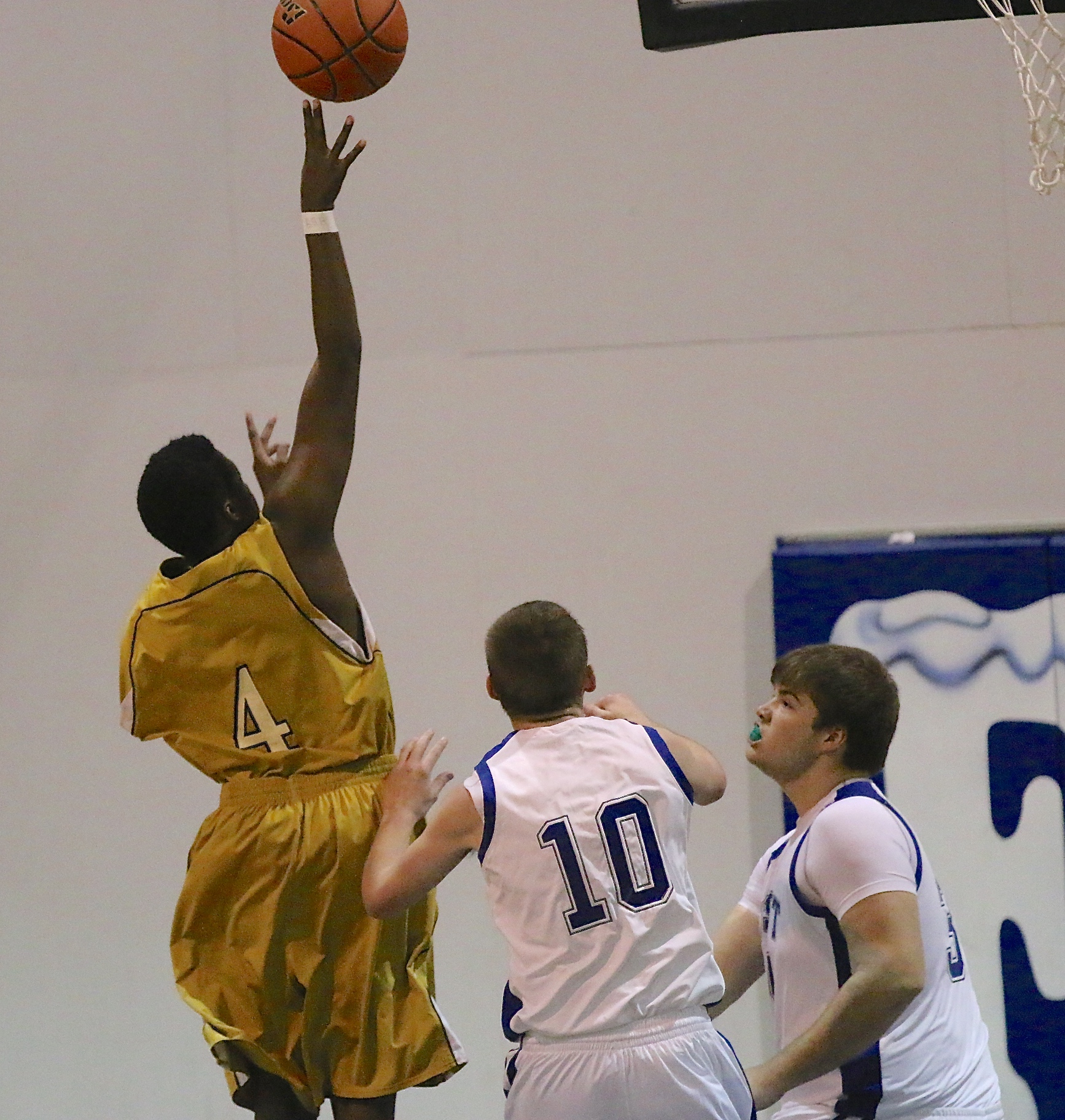 JV Gladiators defeat Frost and dedicate the win to teammate Byron Lusk, Jr. « previous story album next » JV Gladiator Anthony Lusk(4) gets the jump on Frost defenders to get a shot up. (Barry Byers) Download original photo