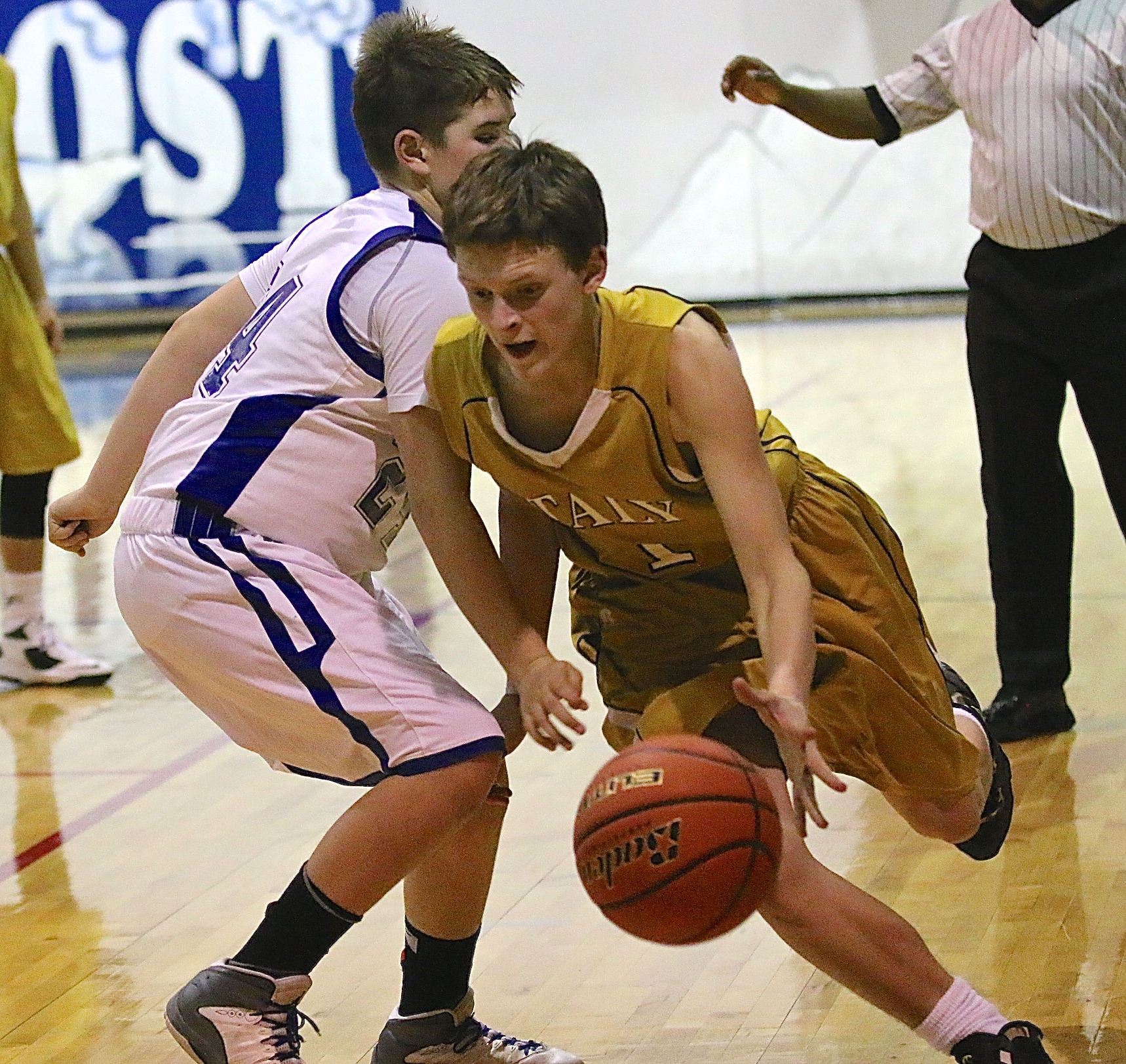 JV Gladiators defeat Frost and dedicate the win to teammate Byron Lusk, Jr. « previous story album next » Italy’s Joshua Cryer(1) dribbles and drives past a Frost defender. (Barry Byers) Download original photo