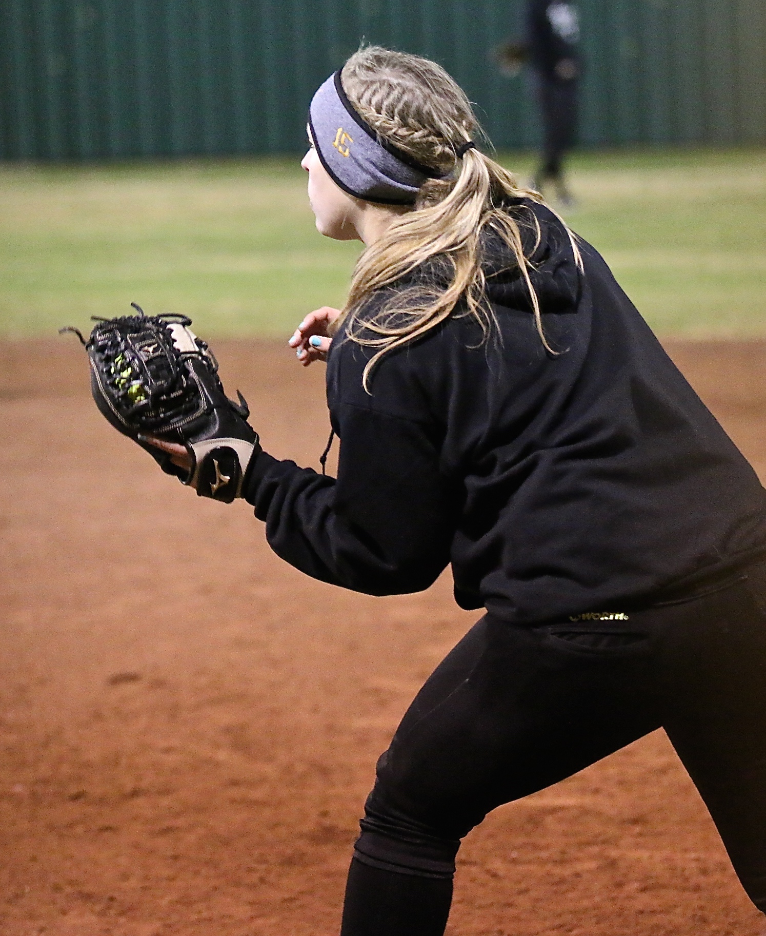 Lady Gladiator Softball pummels Red Oak in season opening scrimmage « previous story album next » Jaclynn Lewis(15) grabs an out after taking over at first-base. (Barry Byers) Download original photo