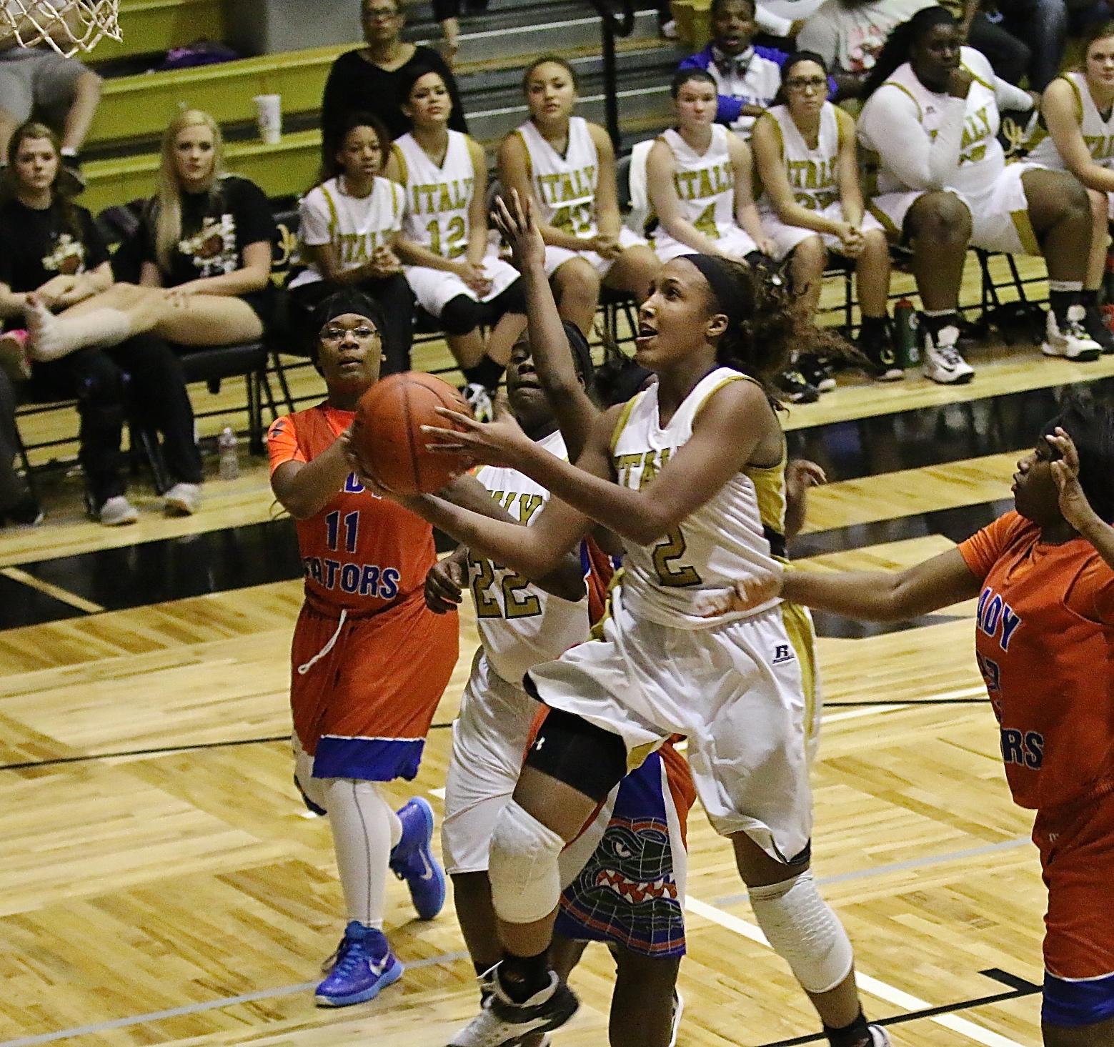 Lady Gladiators end last district home game with 64-57 win over Dallas Gateway « previous story album next » Emmy Cunningham(2) reaches the basket to finish with 32-points in Italy’s last home district game. (Barry Byers) Download original photo
