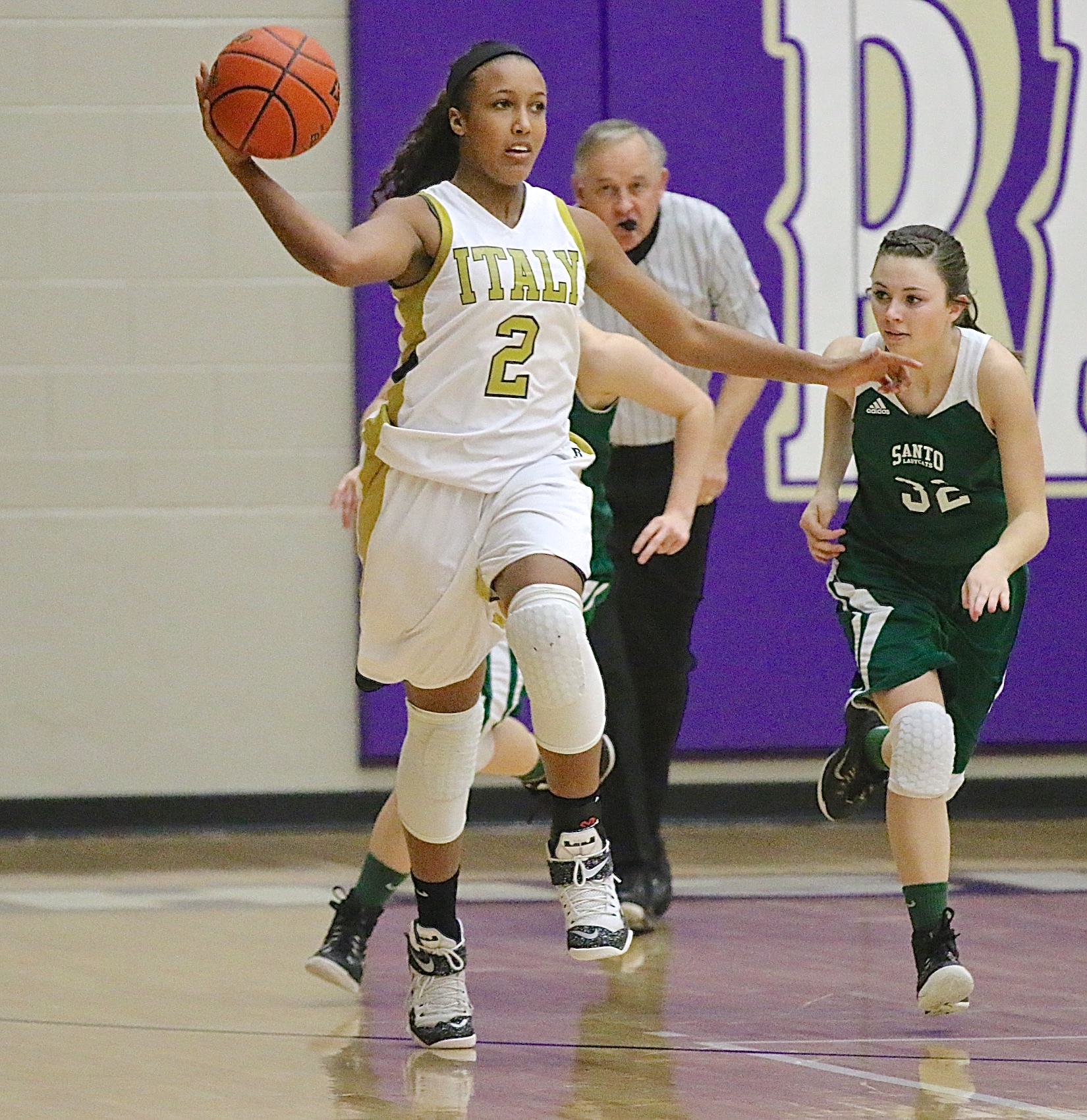 Italy Lady Gladiators drop a heartbreaker to Santo at Area, Lady Cats win 57-52 « previous story album next » Italy’s Emmy Cunningham(2) rebounds the ball and then passes to an open teammate downcourt. (Barry Byers) Download original photo
