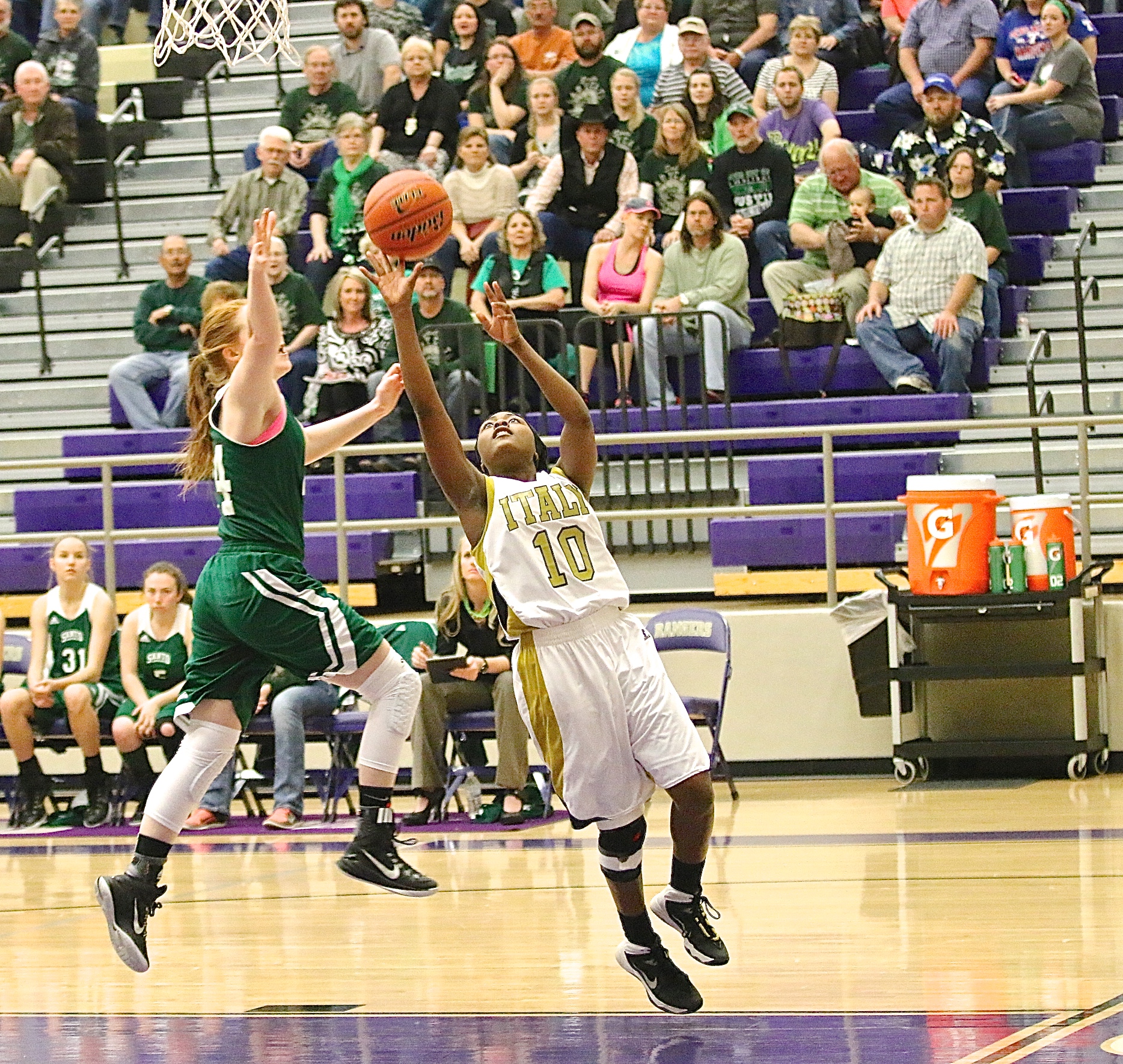 Italy Lady Gladiators drop a heartbreaker to Santo at Area, Lady Cats win 57-52 « previous story album next » Italy’s K’Breona Davis(10) is fouled after attempting a layup against Santo. (Barry Byers) Download original photo