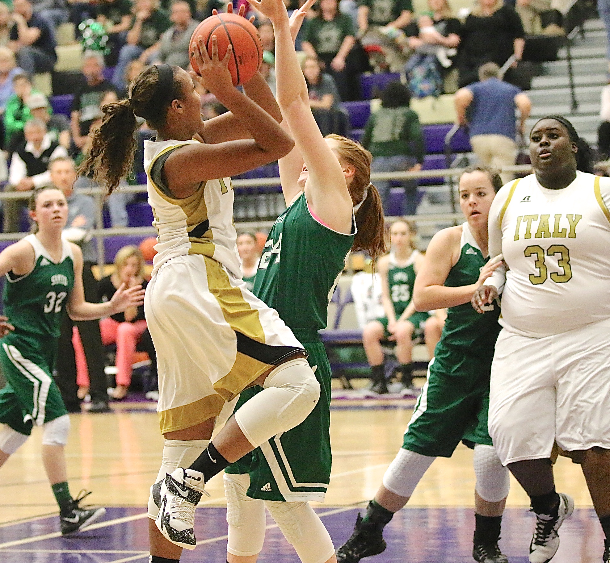 Italy Lady Gladiators drop a heartbreaker to Santo at Area, Lady Cats win 57-52 « previous story album next » Italy’s Emmy Cunningham(3) is fouled by Santo while driving to the basket. (Barry Byers) Download original photo
