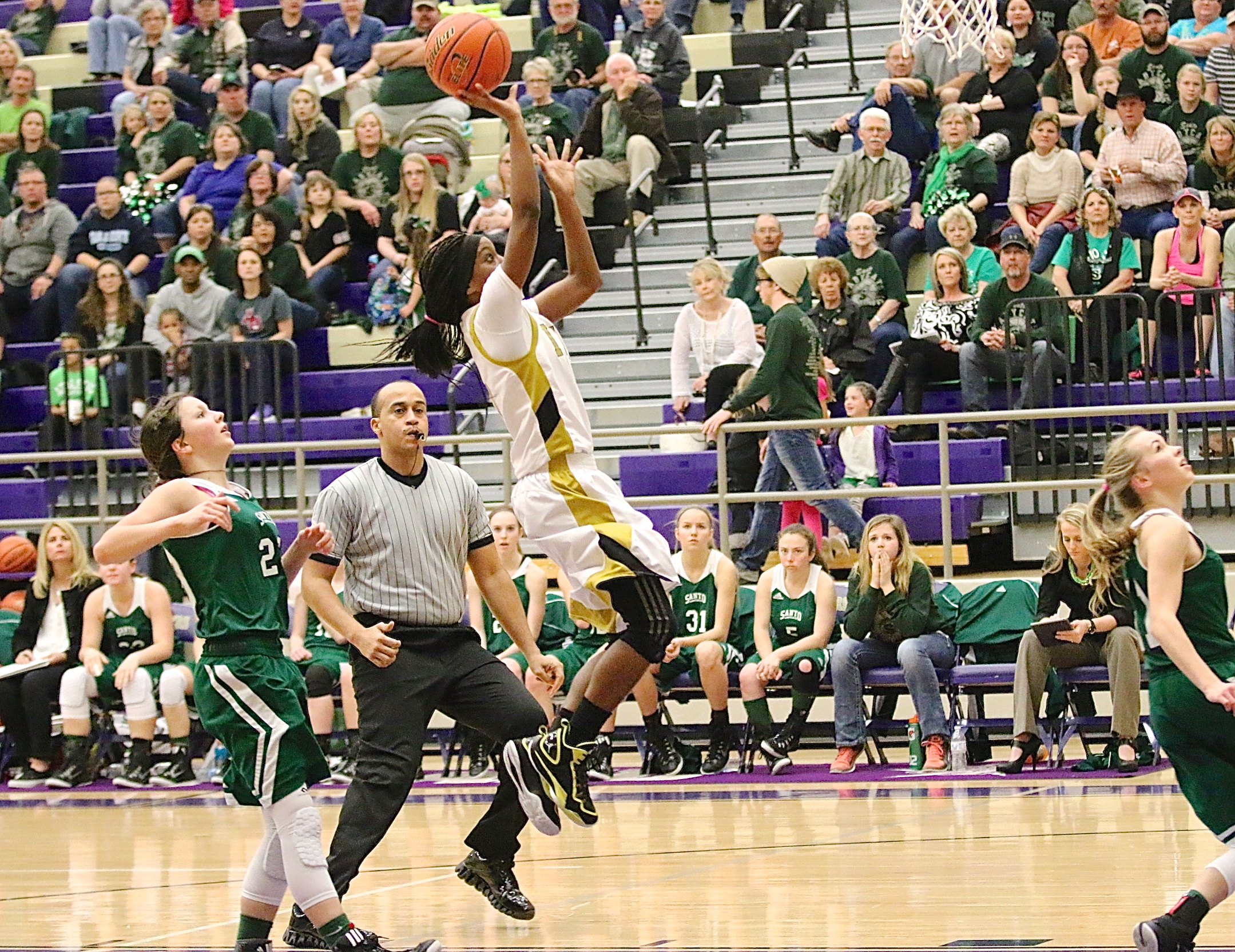 Santo Lady Cats remove the Italy Lady Gladiators from playoffs, 57-52 at Area « previous story album next » Italy’s Kortnei Johnson(3) tries to finish the first-half with a layup to beat the buzzer. (Barry Byers) Download original photo
