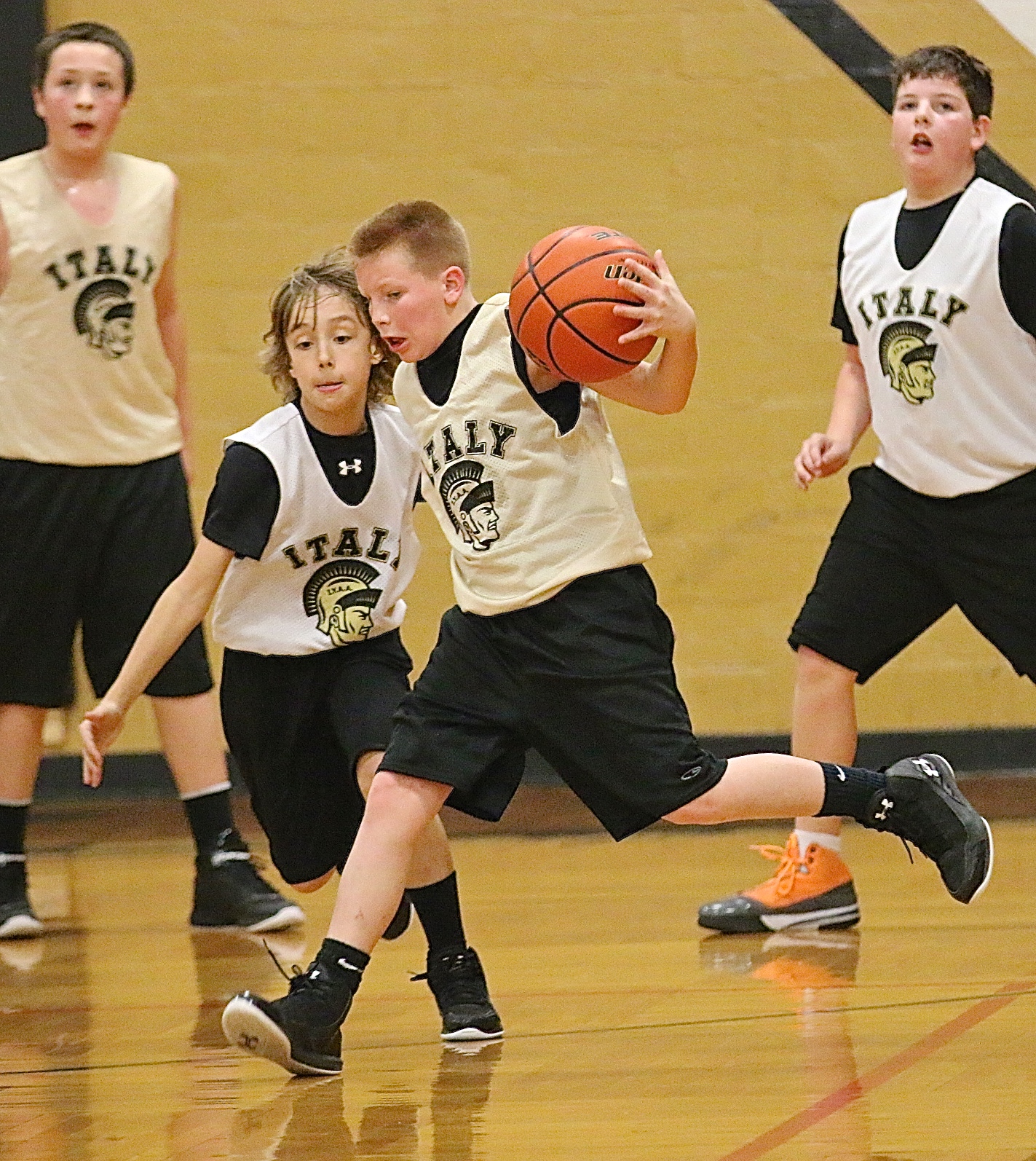 The IYAA basketball season goes into overtime « previous story album next » With time winding down in regulation, Italy Gold’s Ty Cash(10) tries to make something happen with Italy White’s Chase Hyles giving chase. (Barry Byers) Download original photo